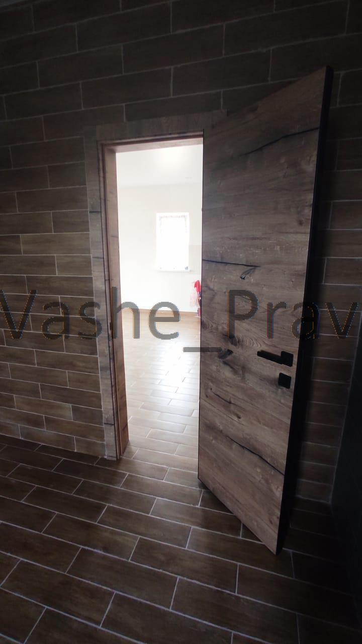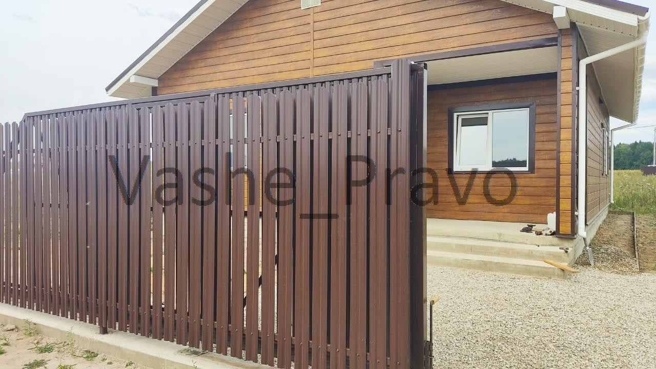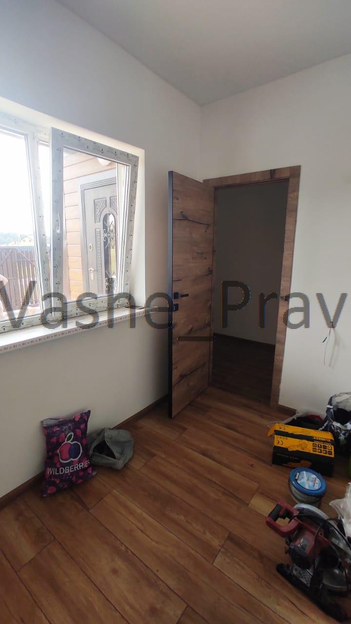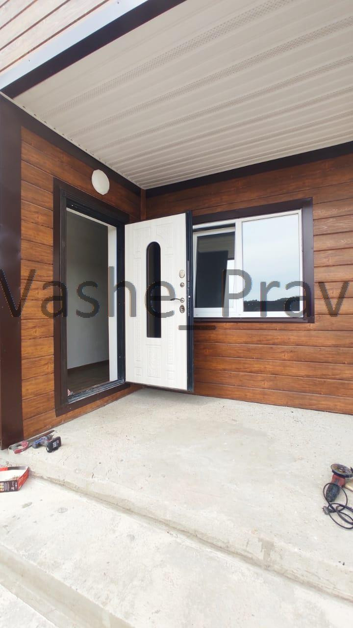 Дом внутри отделан, стены подготовлены под поклейку обоев, разведены все коммуникации, будет установлен газовый котёл, в санузле установлен стационарный поддон для душа. С фасадной стороны установлено ограждение на ленточном фундаменте с автоматическими откатными воротами.
