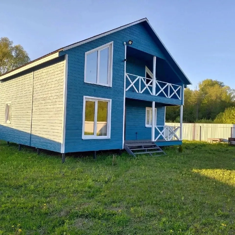 ДОМ: 2-х этажный, каркасный, утеплен. Фундамент - сваи. Построен в конце 2020 года. Общая площадь 132 кв.м. На первом этаже терраса, кухня 15 кв.м., гостиная, спальня, котельная и сан.узел. На втором этаже 3 спальные комнаты и балкон. Коммуникации: электричество подведено под землей, газ (АГВ), вода скважина 25 м с кессоном, канализация септик топаз 4.