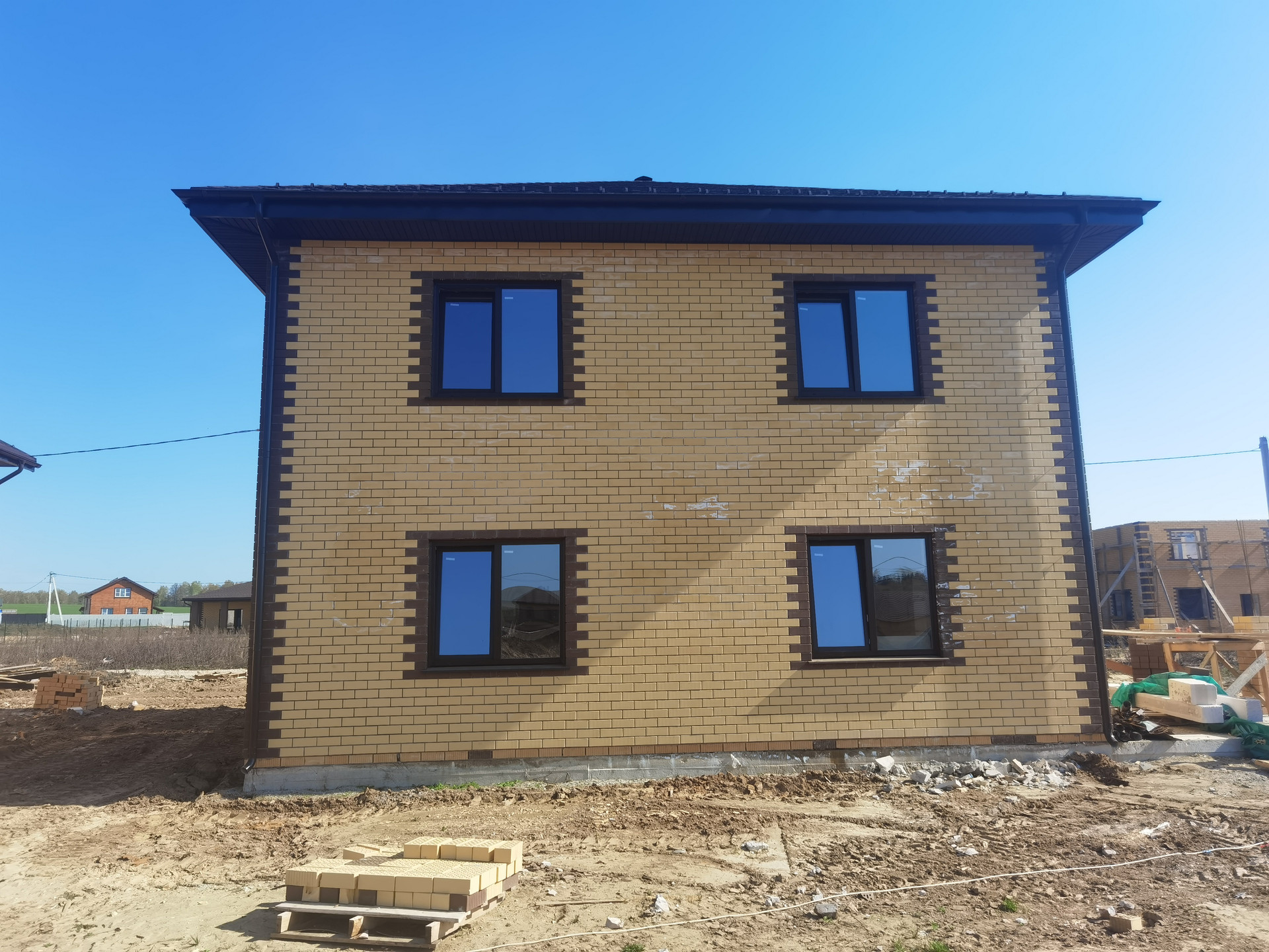 Двухэтажный дом, площадь дома - 155 кв.м., жилая площадь - 75,6 кв.м., кухня - 12 кв.м. Второй этаж - полноценный. Фундамент - железобетонная плита, материал стен - пеноблок облицованный кирпичом, перекрытие - железобетонное, крыша - мягкая кровля.
