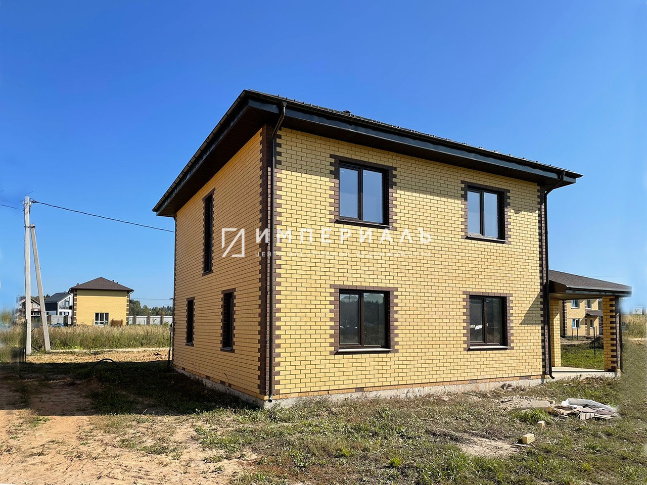 Дом: 154,7 кв.м. Высота потолков 1 и 2 этажа – 3м (без отделки). Второй этаж - полноценный. Материал дома газоселикатные блоки (375 мм) облицованные кирпичом. Внутренняя отделка - БЧО. Крыша - мягкая кровля утепленная 150мм. Окна пластиковые, двухкамерные. Фундамент монолитная армированная плита. Установлена водосточная система. Перекрытие – железобетонное. Жилая площадь - 75,6 кв.м., кухня - 12 кв.м