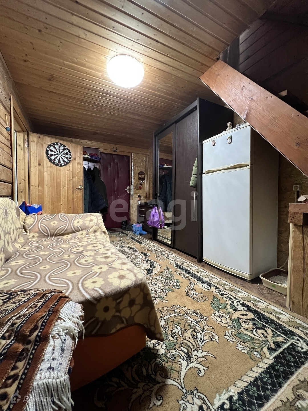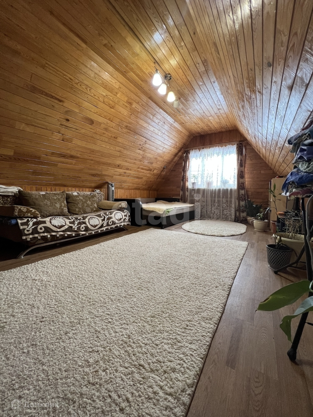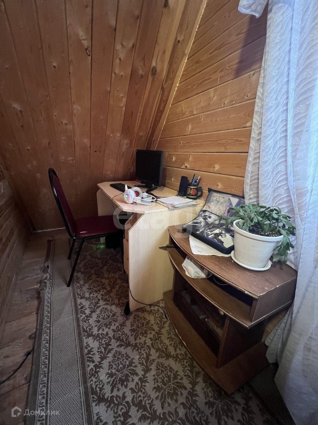 Участок ровный, 20 соток, есть сарай, парник и вольер для собаки. Перед домом парковочное место, впереди ограждение профнастил с воротами, по периметру - сетка-рабица.