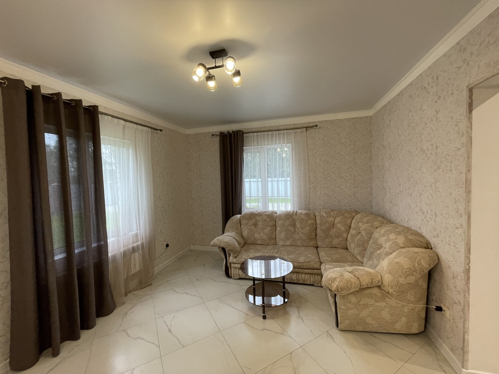 Коммуникации: центральный газ (газовое отопление), колодец (14 колец, 6 в воде), электричество 15 кВт 380 В., канализация (переливная) теплый пол на всем 1-м эт.