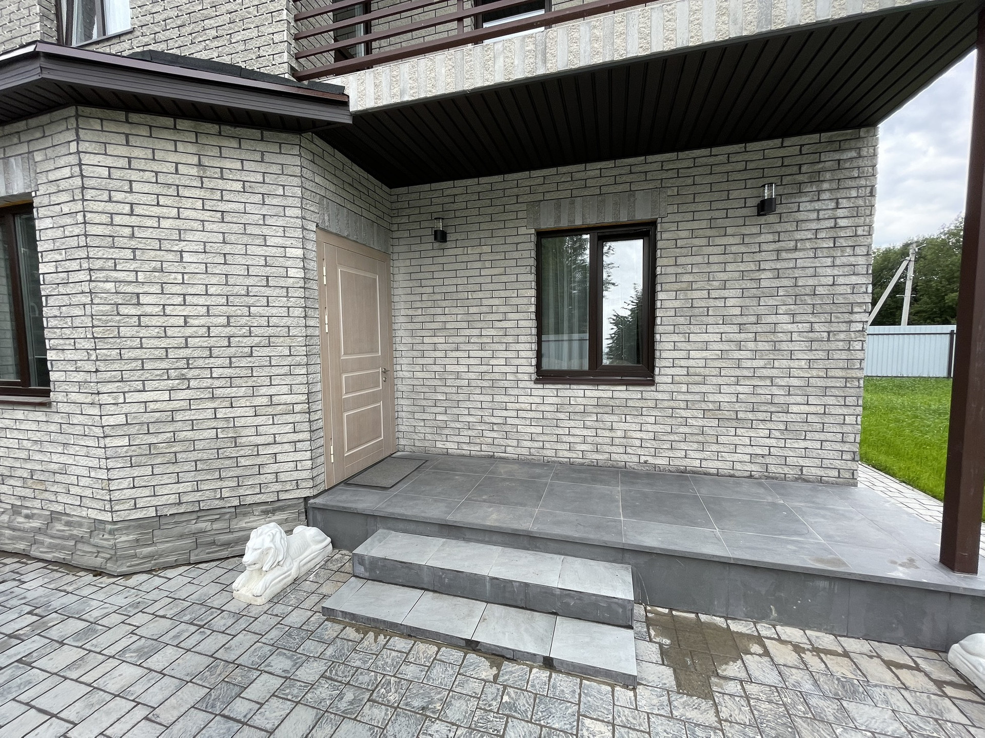 Фундамент- ж/б плита, перекрытия деревянные, стены: газо-силикатный блок + утеплитель + пеноплекс 3 см. + облицовочный колотый кирпич 4 см.