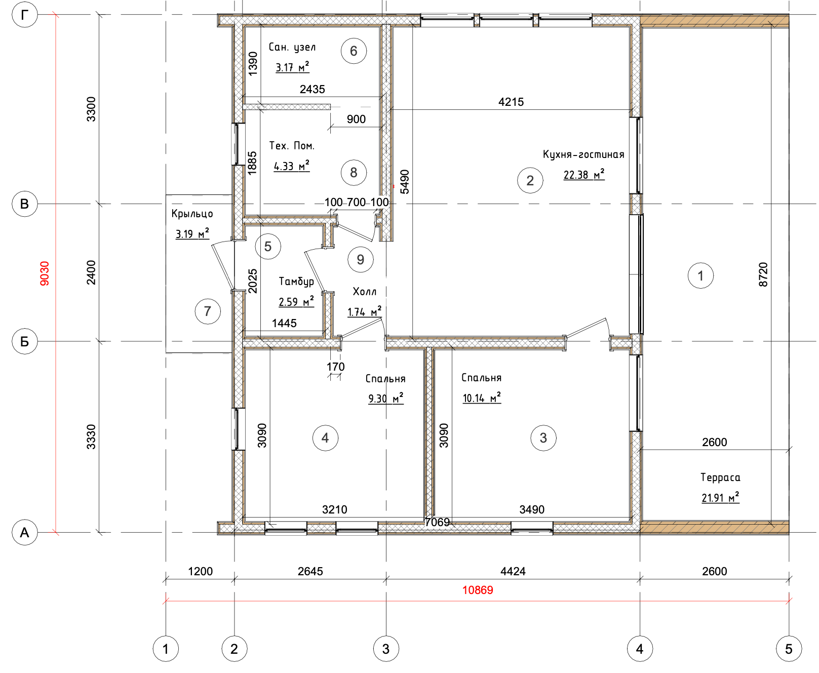 площадь террасы 21,9 кв.м