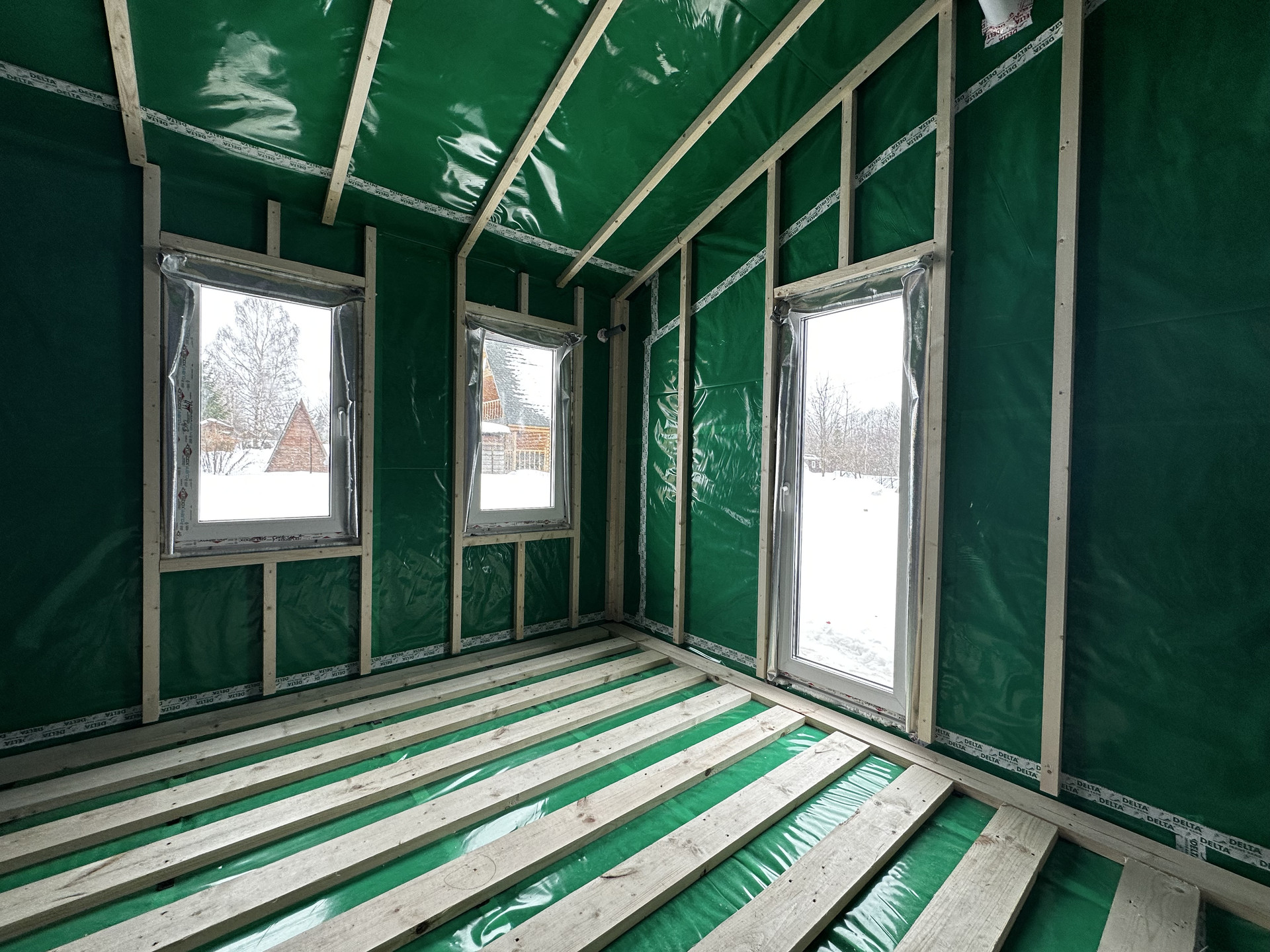 Дом построен по каркасной технологии.