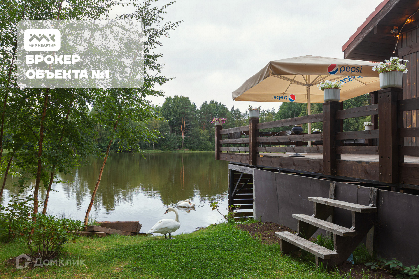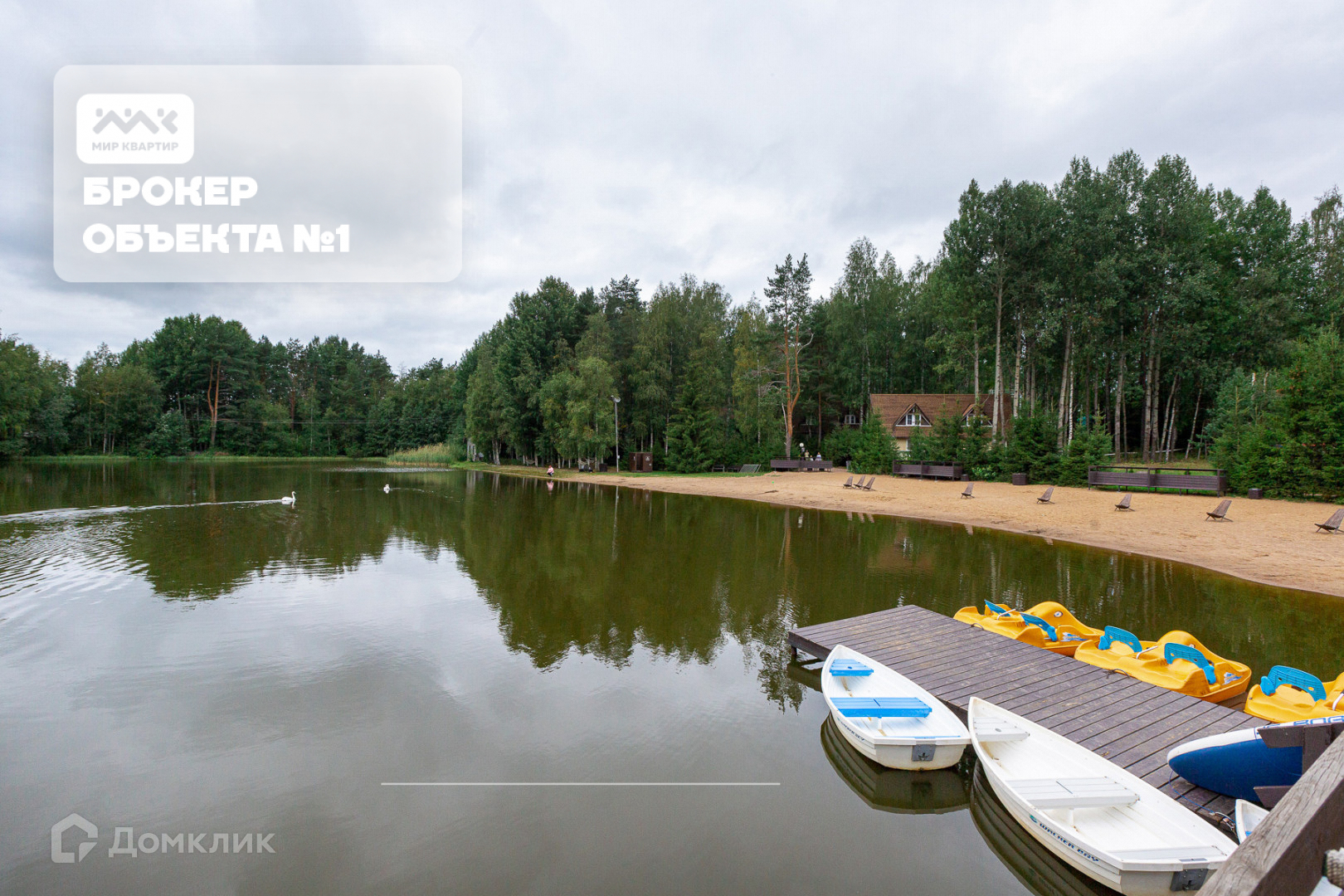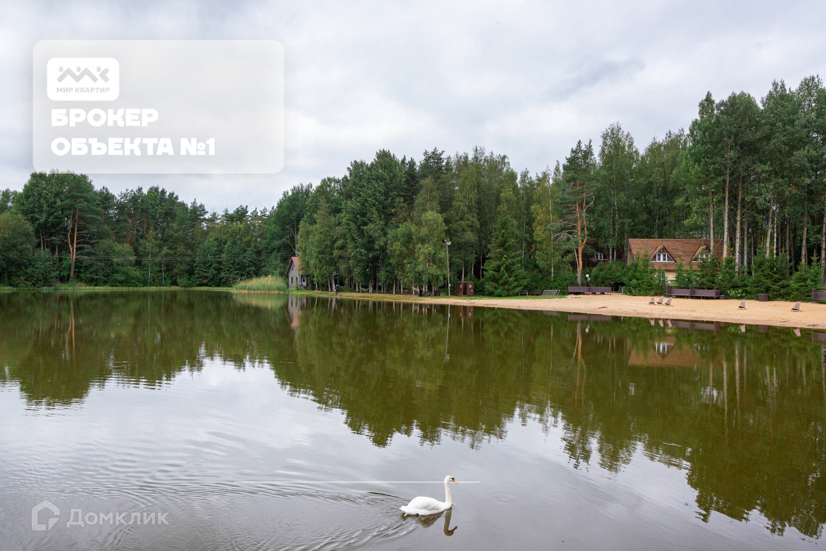 Небольшое озеро, где живут два белых лебедя
