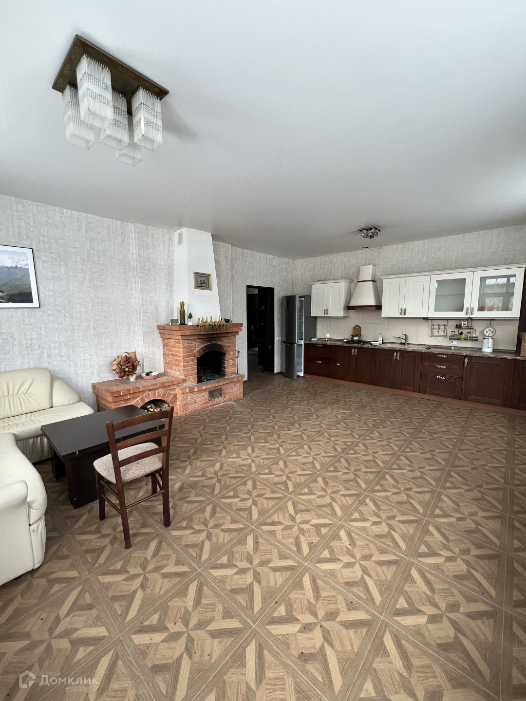 -просторная кухня - гостиная с камином,