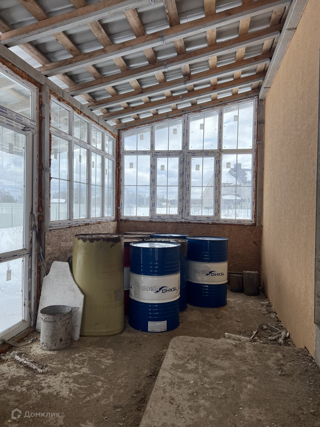 Построен теплый контур, внутри черновая отделка.