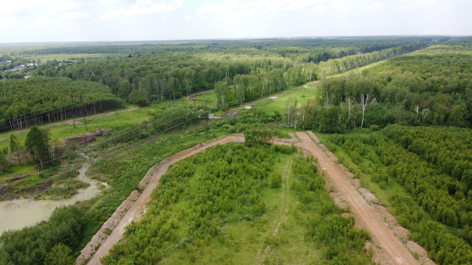 Есть удобный подъезд к посёлку и непосредственно к участку. Дороги широкие. Управляющей компании нет.