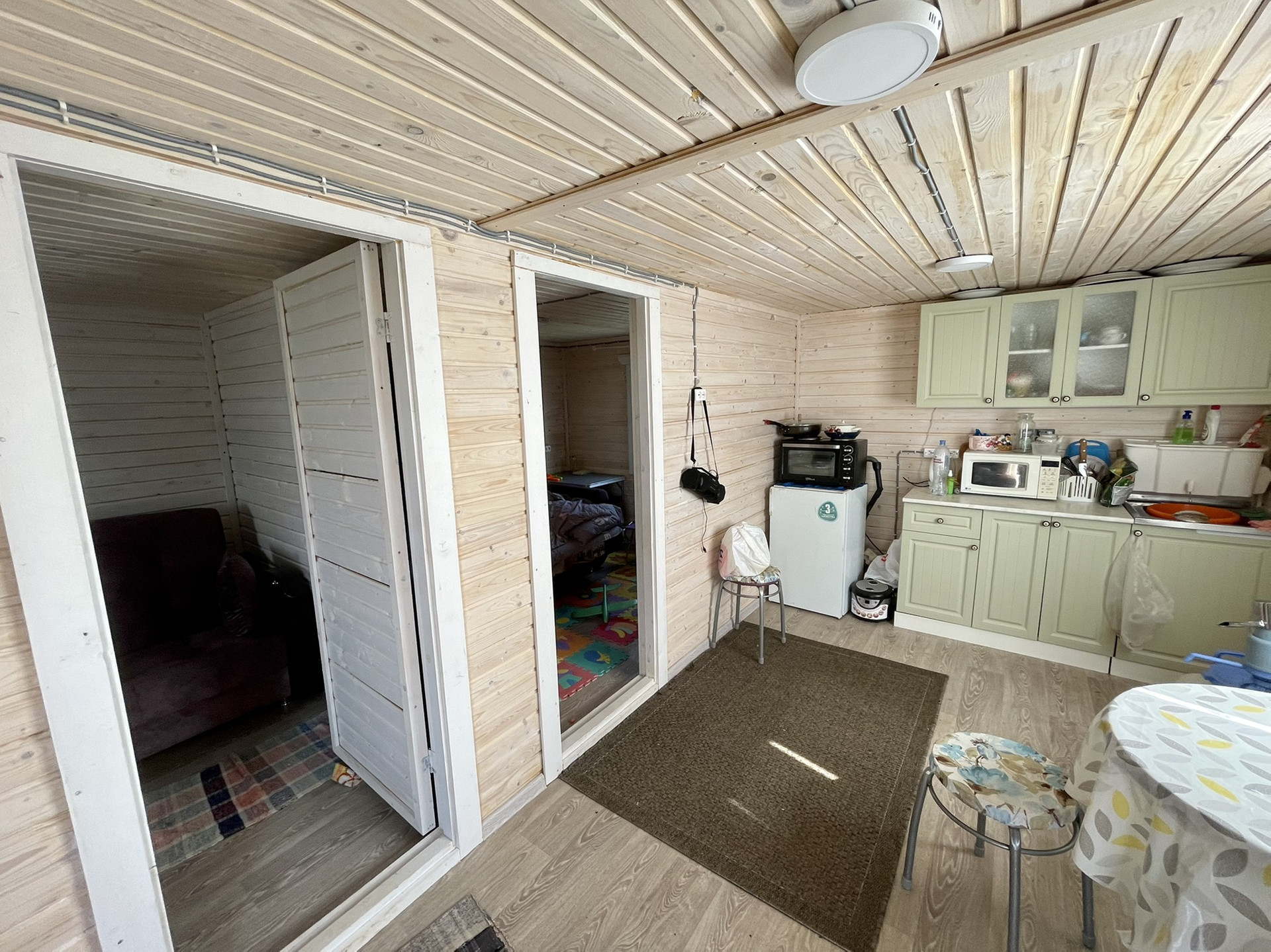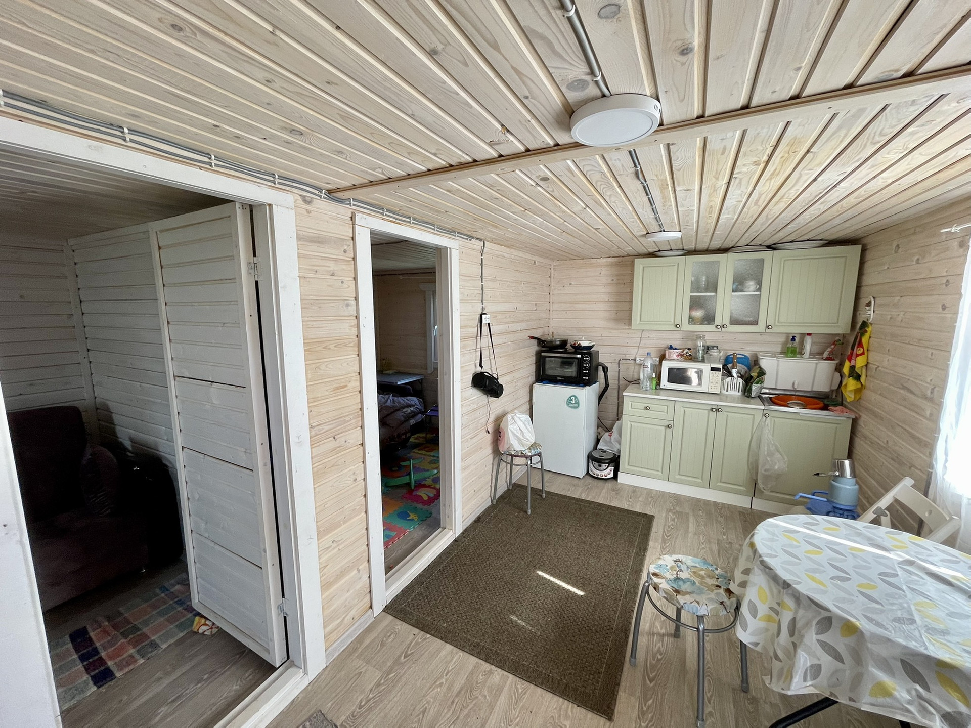 Предлагается к продаже домик-дача на участке 17 сот. в Поозерье, д. Васильевское. В шаговой доступности река Веряжа, до карьеров 10 минут на машине, до озера Ильмень 10 минут. Тихое место удалённое от оживленной дороги, в 100 метрах лесок, в котором очень хорошо растут грибы, в 2 км от участка действующая Васильевская церковь. Домик (построен в 2021) размером 5*6 с двумя комнатами и большой кухней-гостиной (был задуман как временный для проживания, пока строился бы большой, а потом как гостевой) . Домик стоит на сваях. На дом имеется свидетельство, он зарегистрирован (можно прописываться). Подведено электричество (тариф деревня) , сделана разводка мастерами. При дополнительном утеплении можно жить зимой. Вырыт колодец, после небольших доработок в нем чистая вода и набирается очень быстро. Также в прошлом году установлена баня. Комфортна как для помывки, так и для любителей попариться, через час можно уже принимать банные процедуры. В этом году установили теплицу (на сваях), покупали в проверенной фирме, установлены грядки из плоского кирпича (очень удобно). На участке есть посадки плодовых и ягодных растений, высажены сосенки. Участок высокий и сухой (после снежной зимы даже слякоти не было). Вокруг дома, на всякий случай, сделан дренаж и труба выведена прямо в канаву. Участок огорожен забором. В планах было строить дом больше.