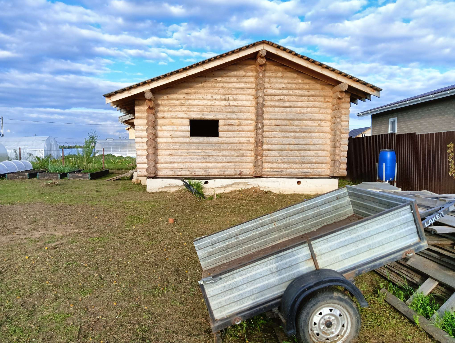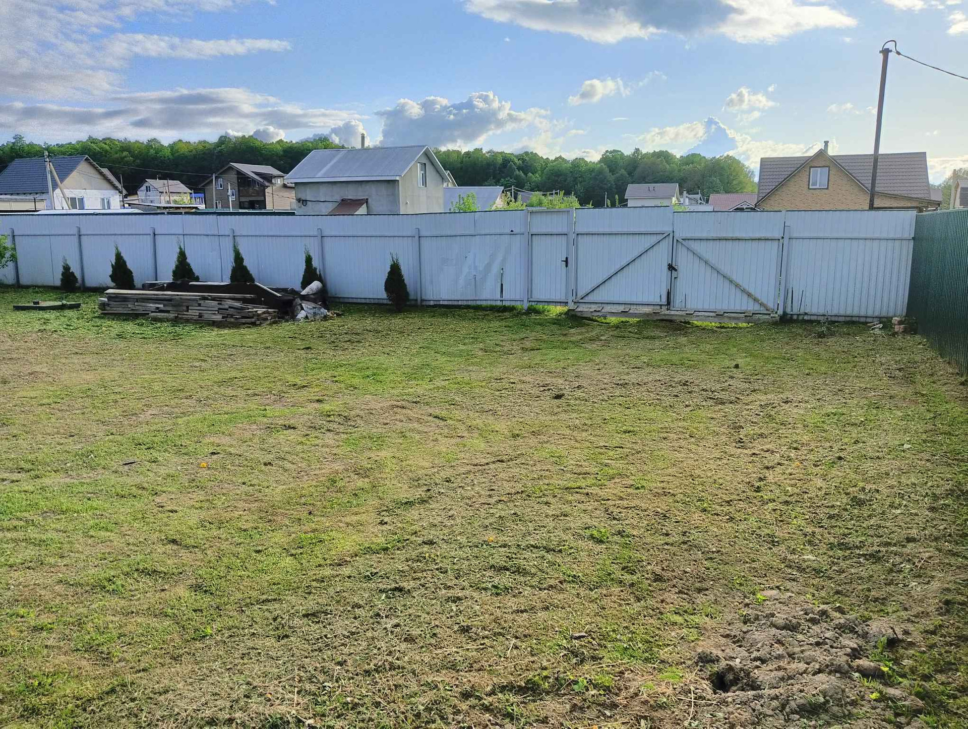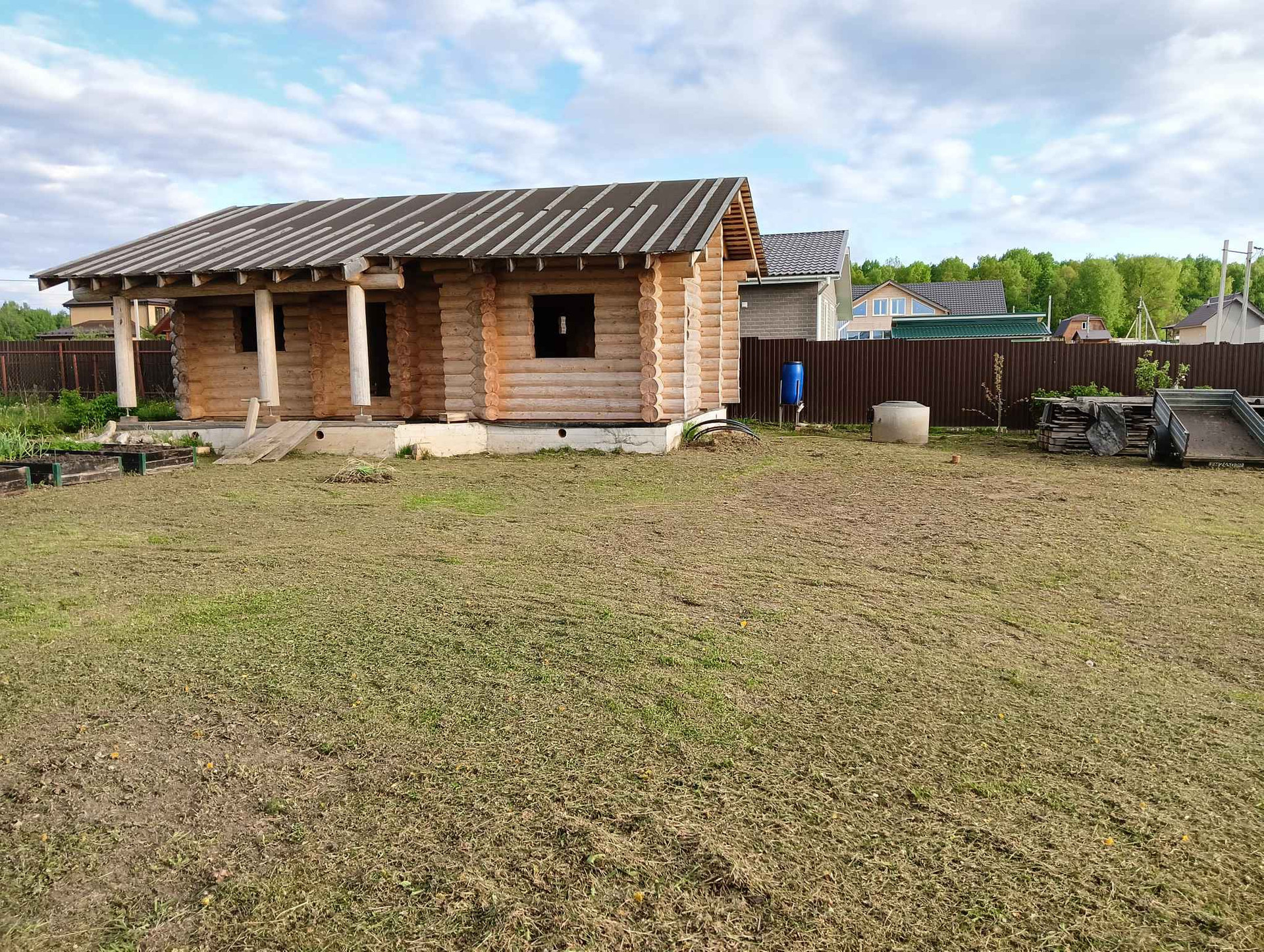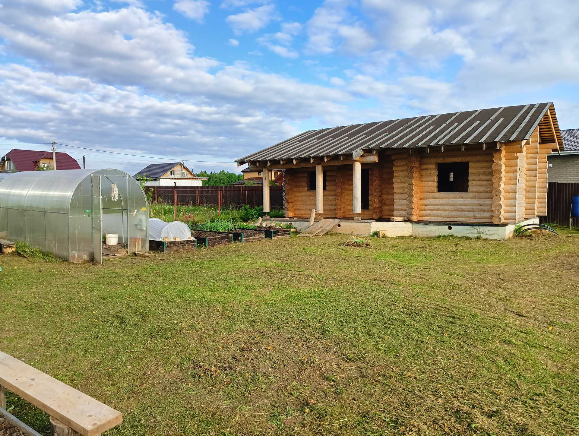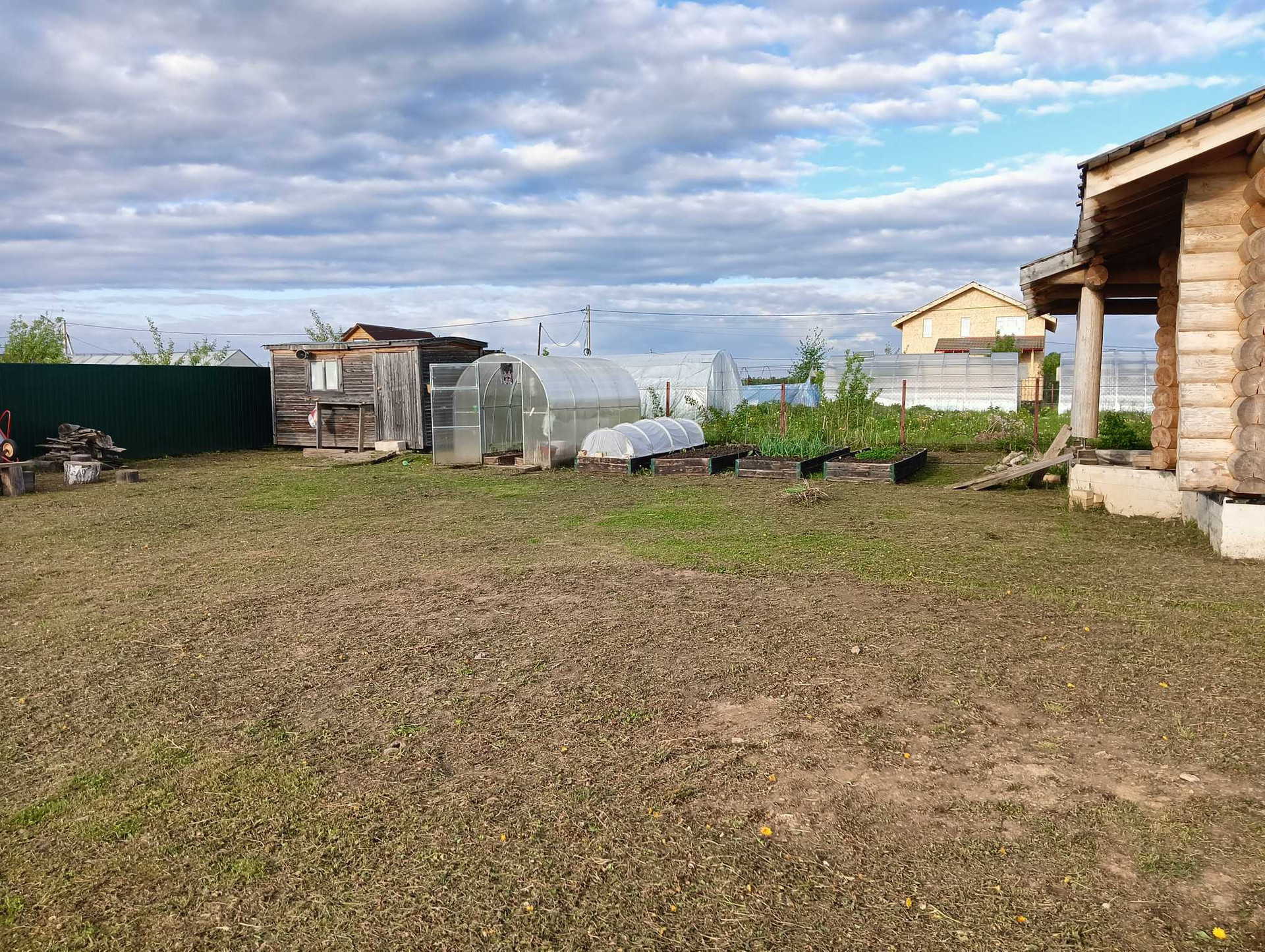 Продаю участок с домом. Бревно, ручная рубка, диаметр 28 см, архангельская сосна. Качество сборки идеальное, дом дал усадку, можно  шлифовать и т. д. На участке септик, колодец 7 колец, теплица, 4 грядки, 2 плодоносные яблони, слива, груша, несколько кустов смородины, малины. К участку подведены газ. Участок правильной, ровной формы.