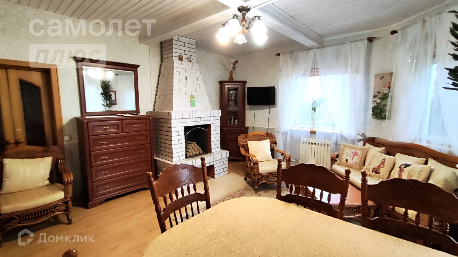 В гостиной первого этажа действующий камин, он обогревает также гостиную второго этажа.