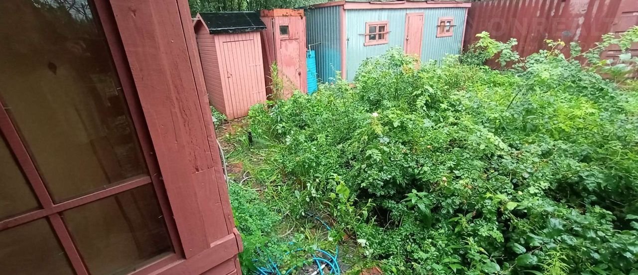 Забор Рабица, заезд для стоянки авто, стоянка плитка. На участке монолитный фундамент 6х6. Бытовка для хоз нужд  Коммуникации летний водопровод заведённый в дом, электричество.