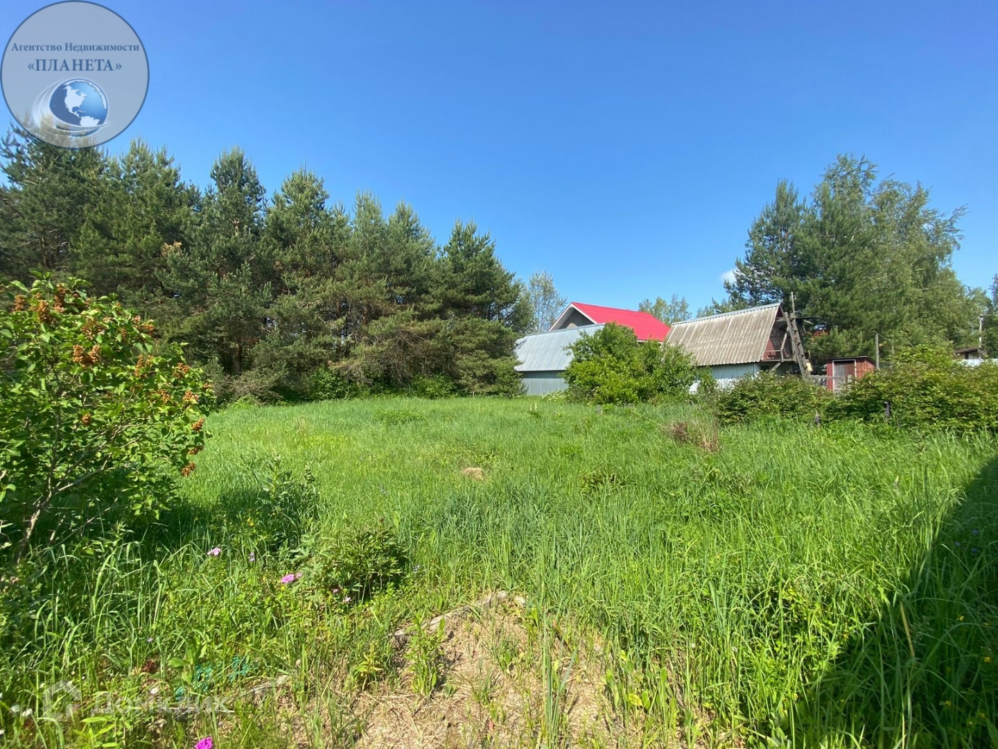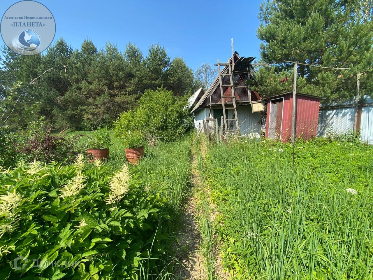 На территории участка посажен сосновый лес,а так же яблони и вишня. Грядки заросли.