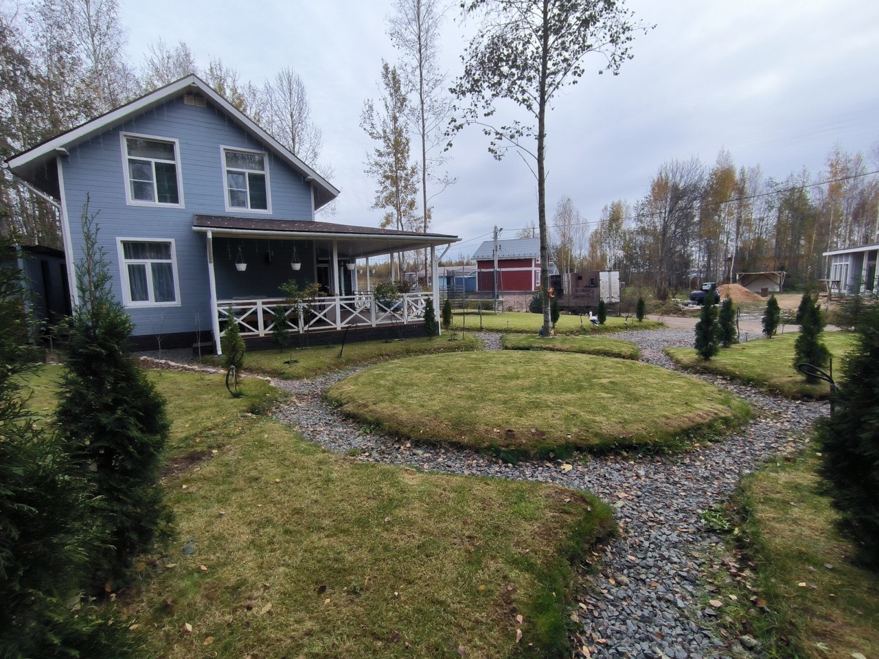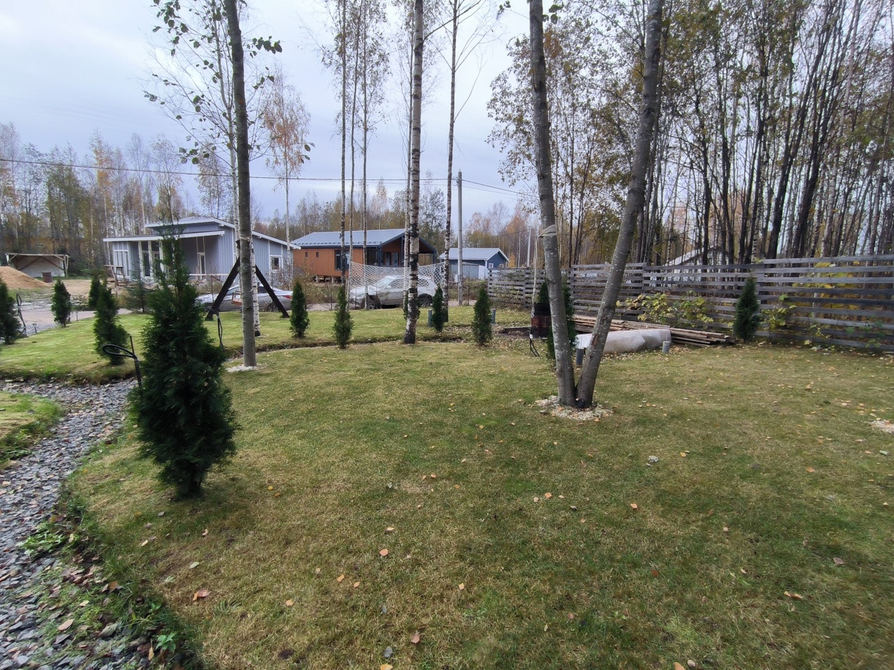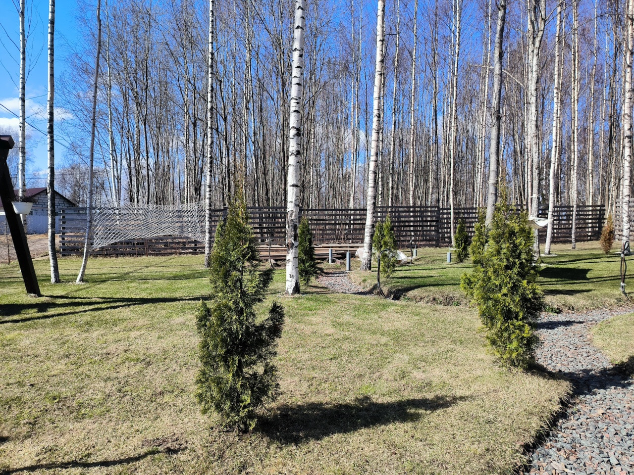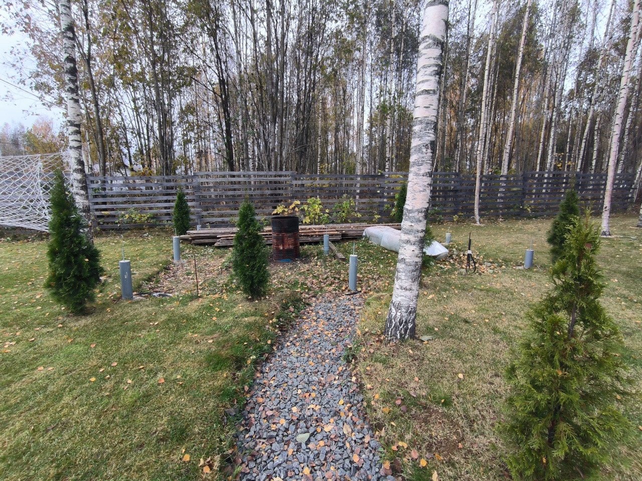 Растут березы, туи, отсыпаны дорожки.! Так же есть сарай для инвентаря и дровник.