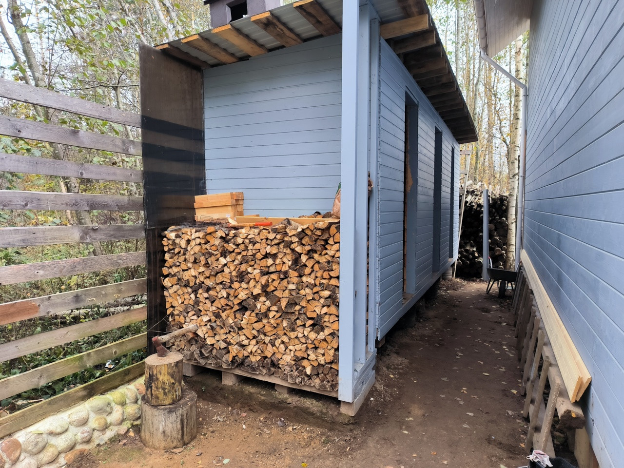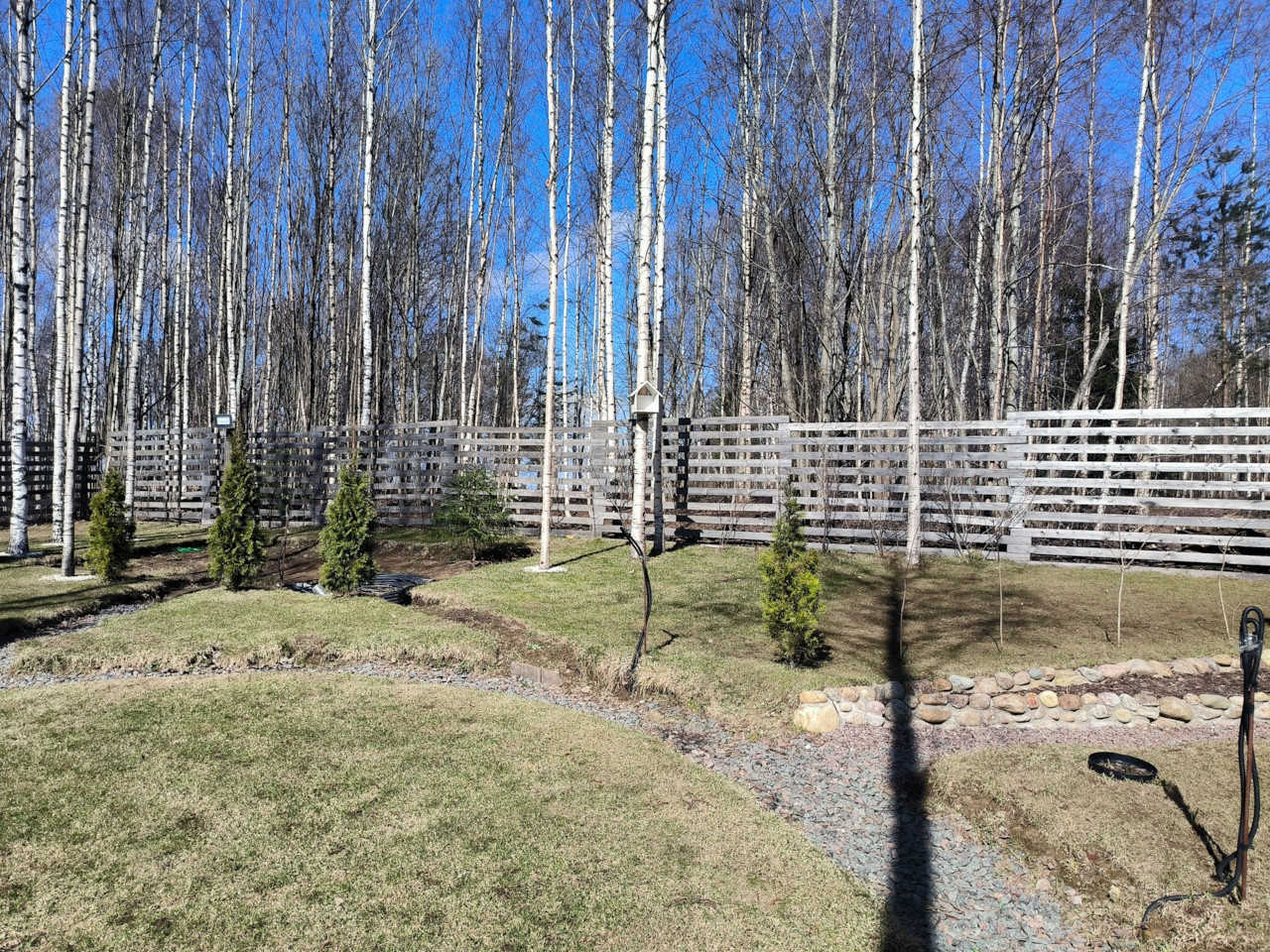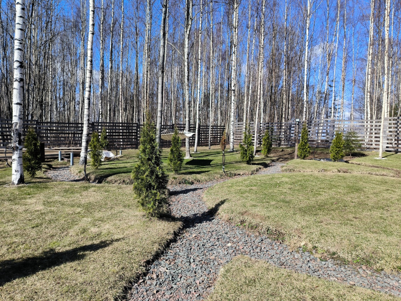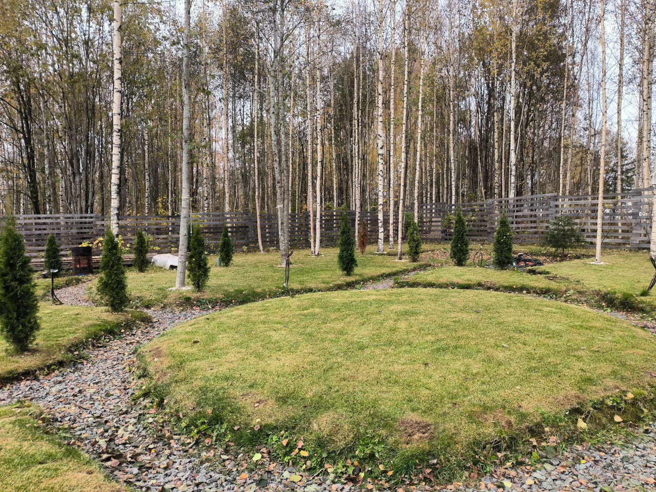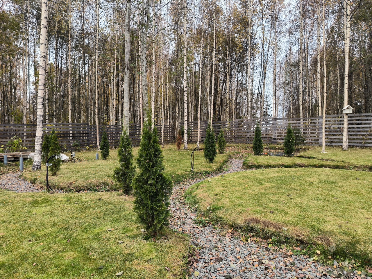 Растут березы, туи, отсыпаны дорожки.! Так же есть сарай для инвентаря и дровник.