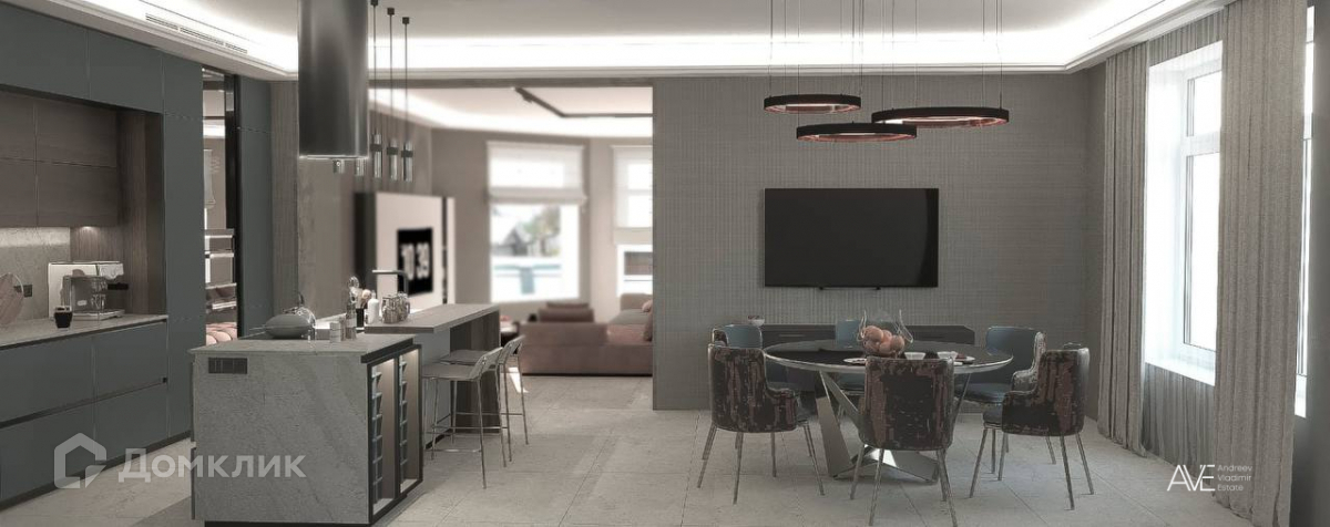 - просторная кухня столовая и светлая объемная гостиная в эркере,