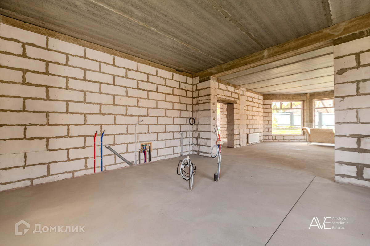 Дом на сегодняшний день в черновой отделке с разведенными коммуникациями, полной разводной электричества, отопления, теплых водяных полов, смонтированной котельной и финишной стяжкой под отделочные материалы согласно дизайн проекта, который готовы передать новому владельцу, а так же проверенная бригада, которая завершит проект опираясь на Ваши пожелания.