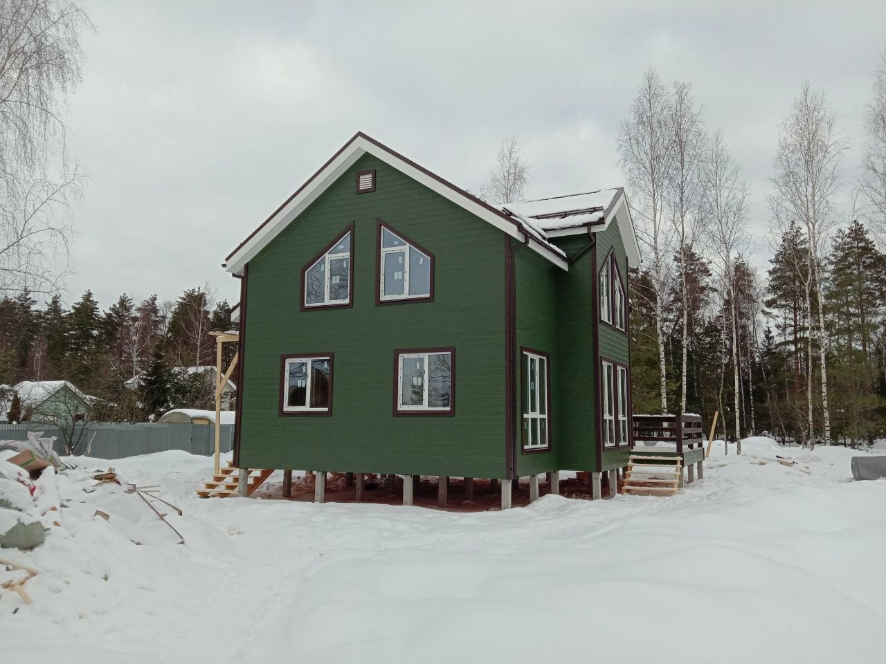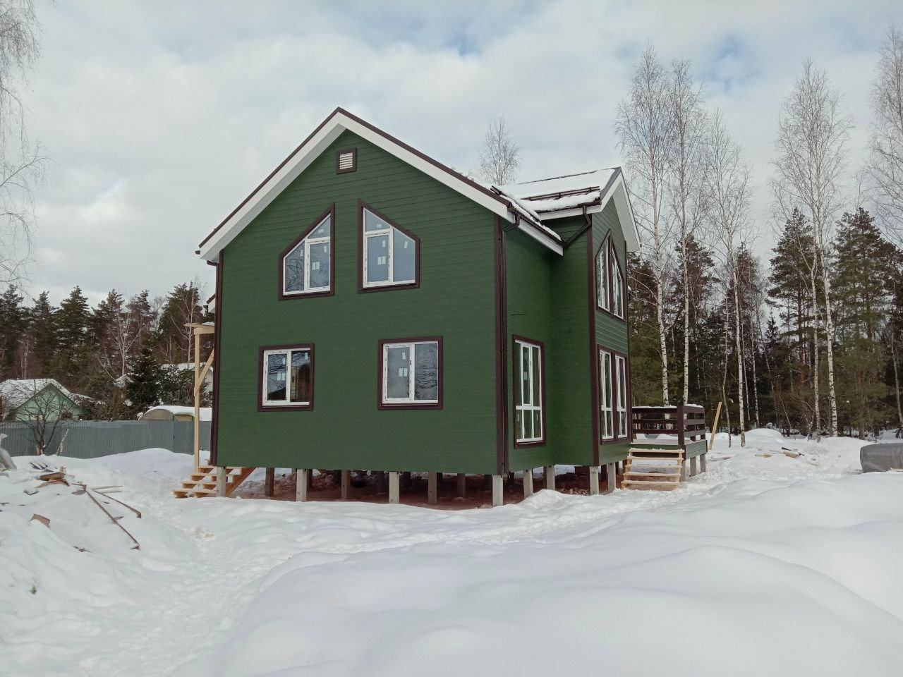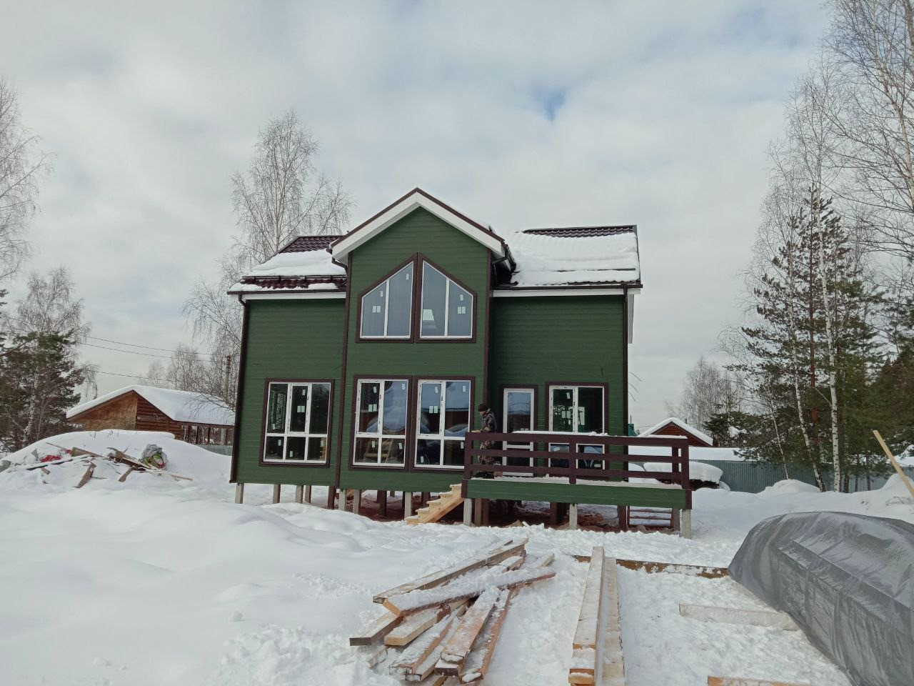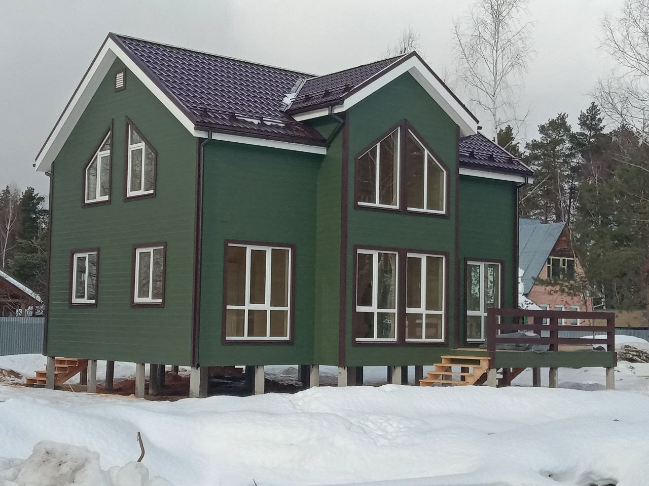 Дом построен по канадской технологии каркасно-брусовой. Обработан огне-биозащитой, качественная и безопасная электрика в доме. Крыша металлочерепица, окна Premium-класса, дом на винтовых сваях 2.5 м. - забетонировано. Утепление стен, полы, перекрытия, крыша. Покраска дома снаружи входит в стоимость.