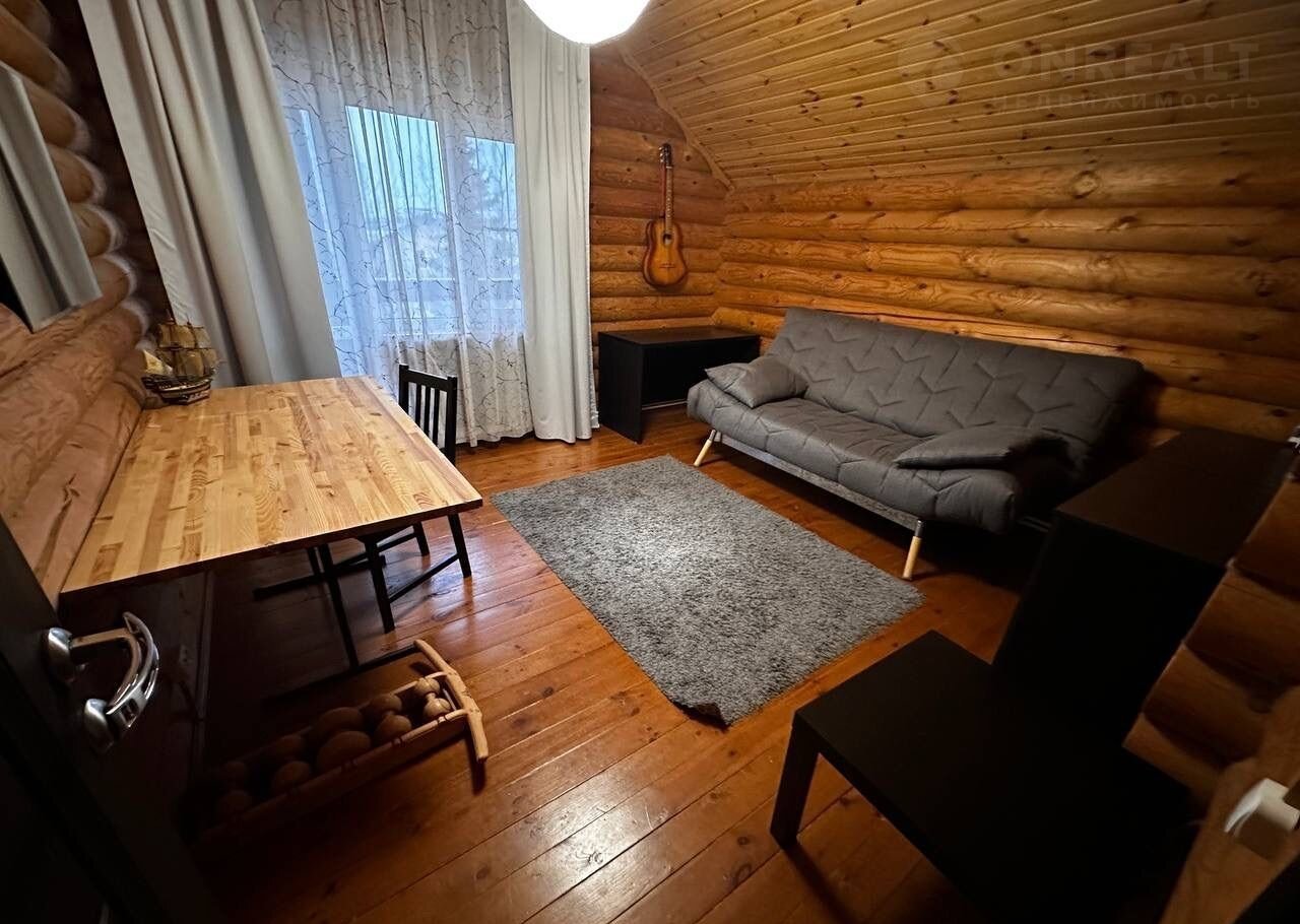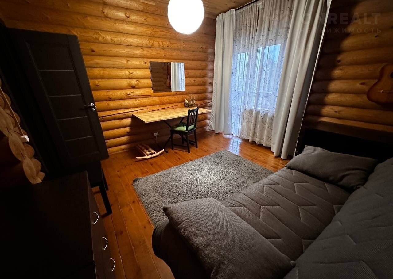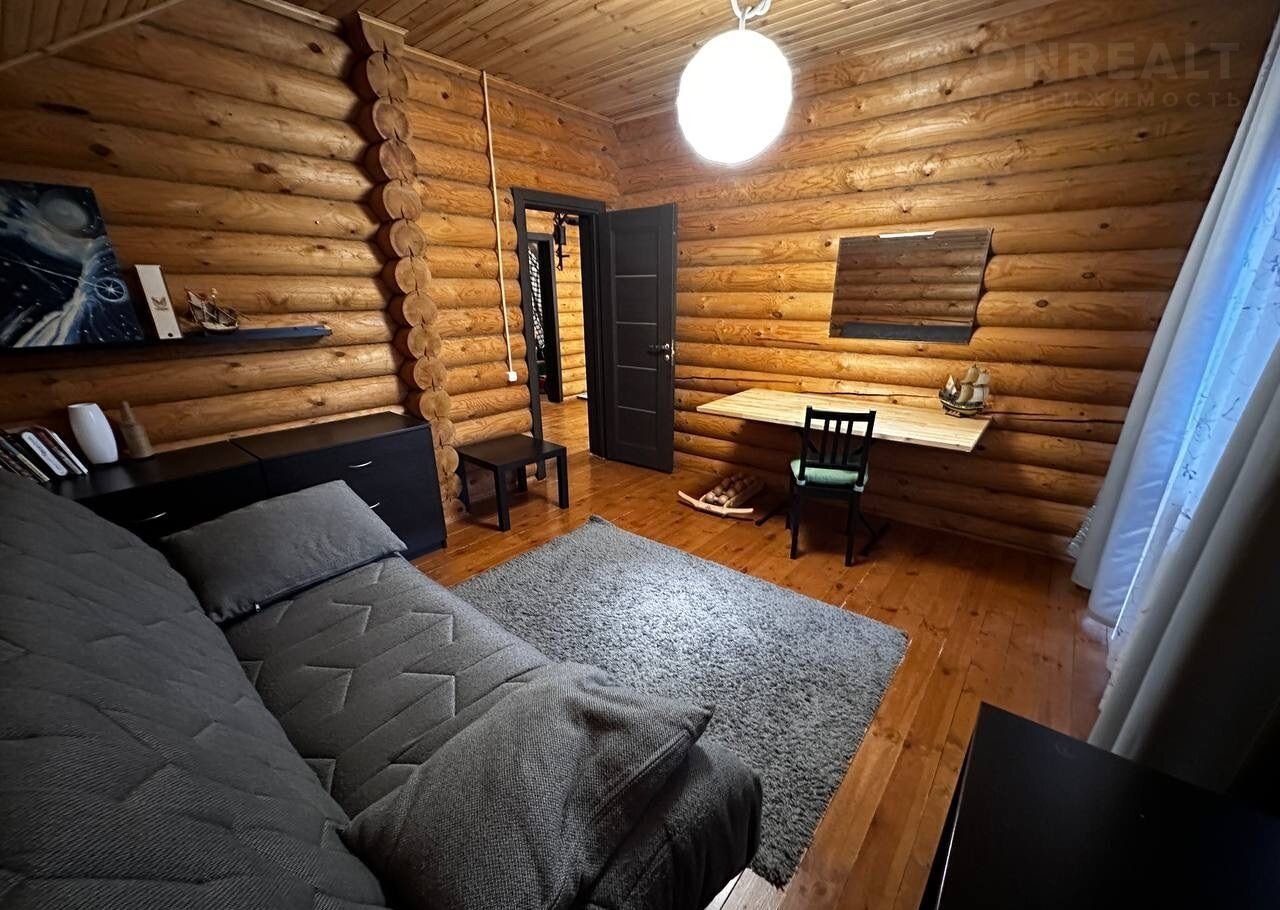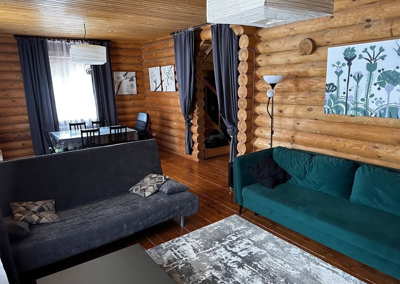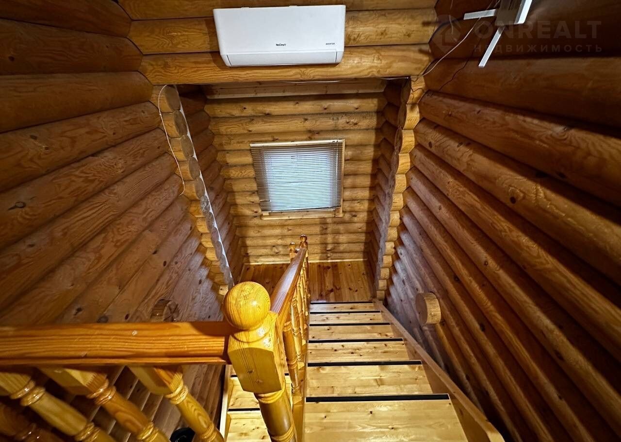 Дом построен из оцилиндрованного бревна.