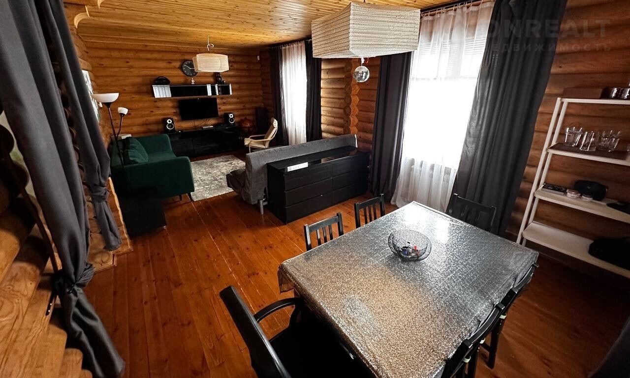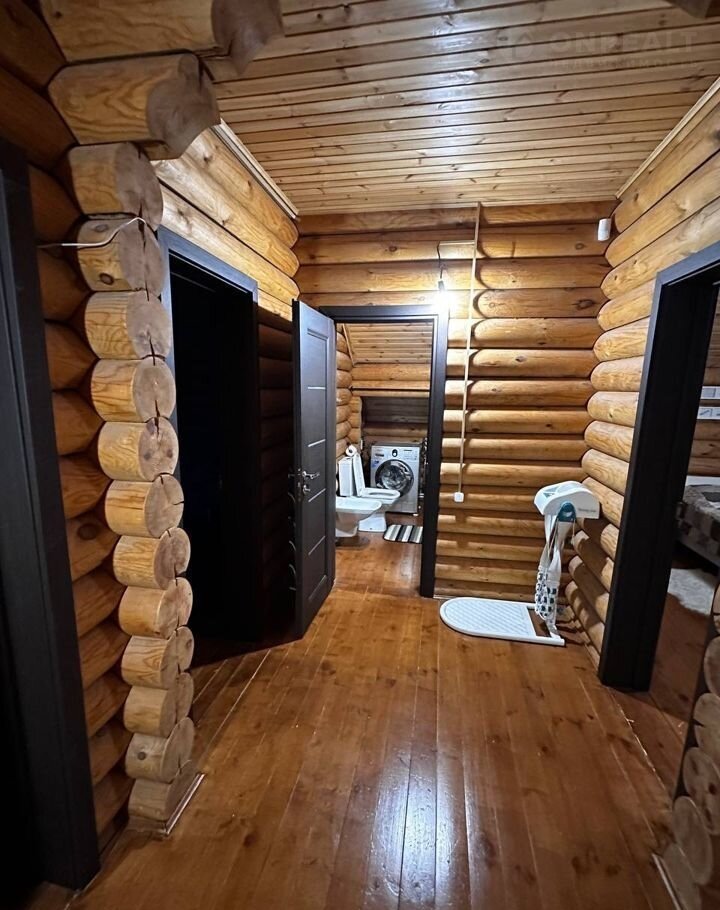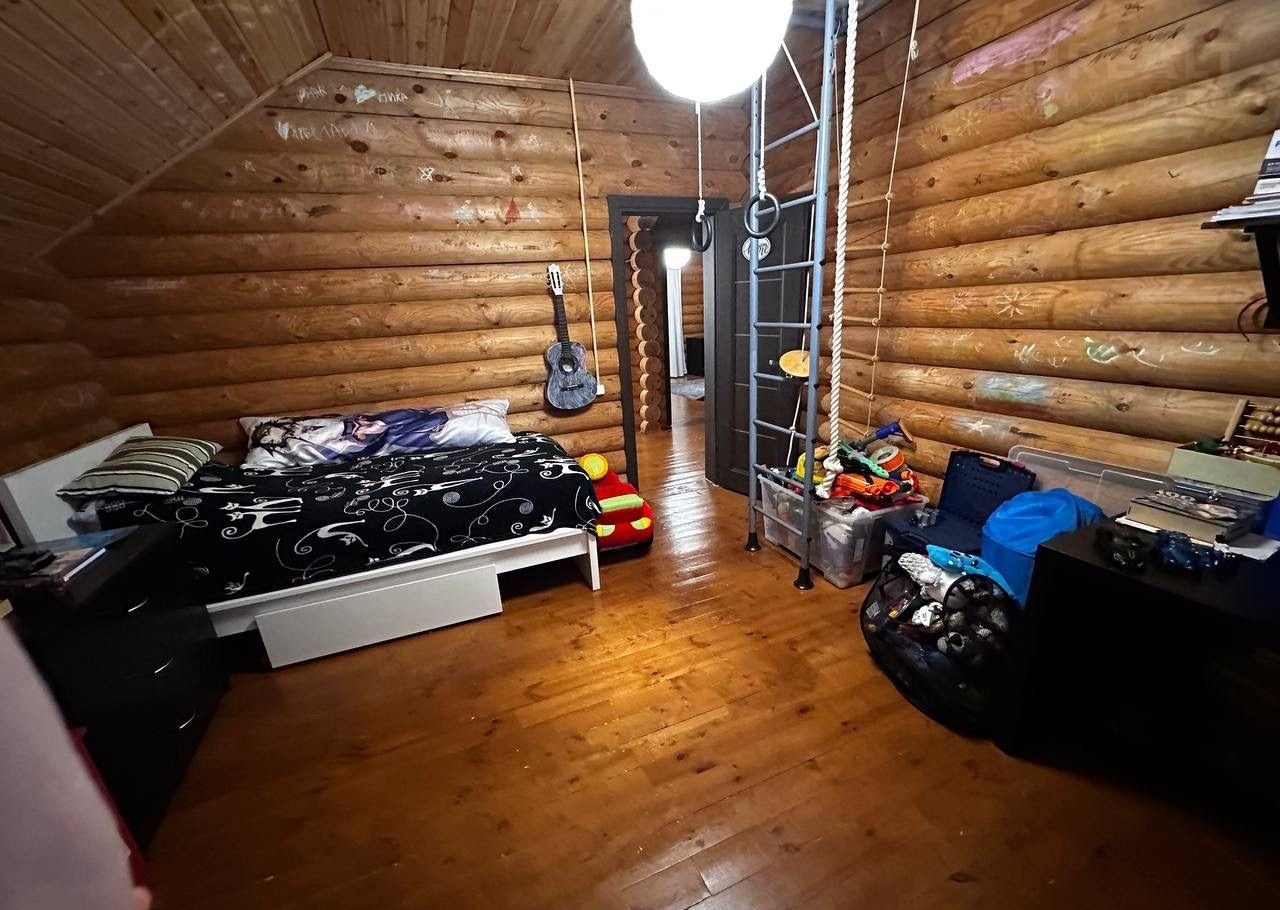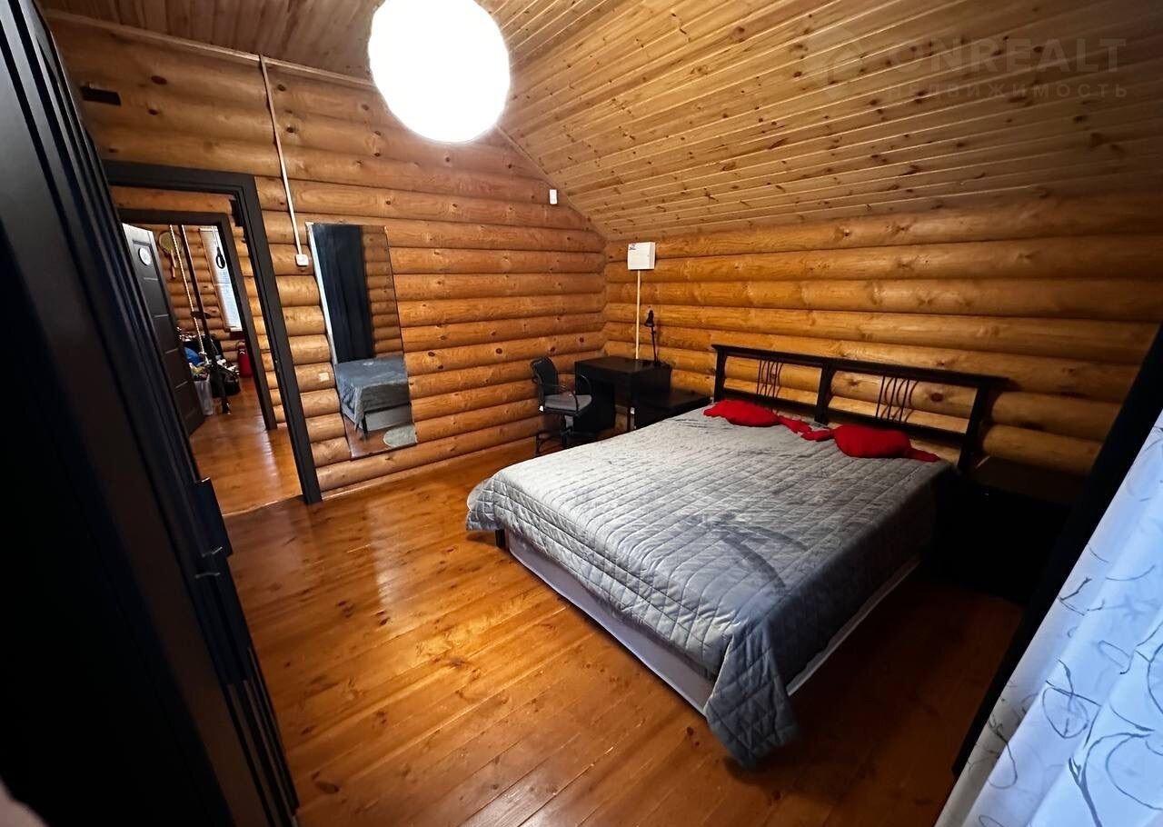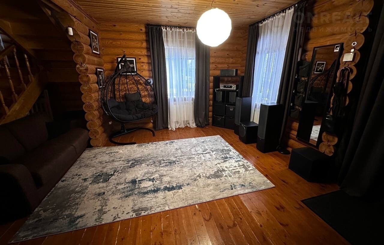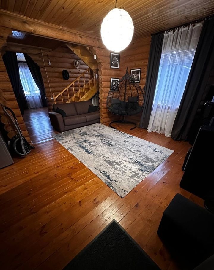 Дом построен из оцилиндрованного бревна.