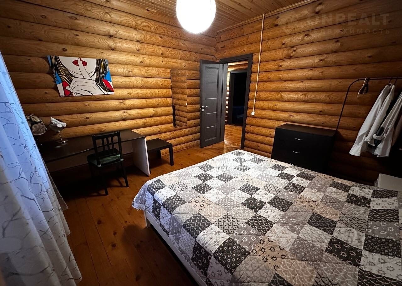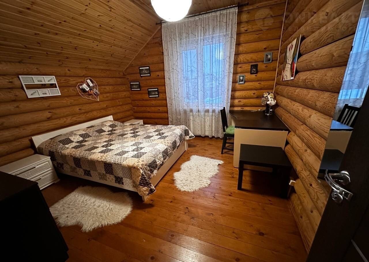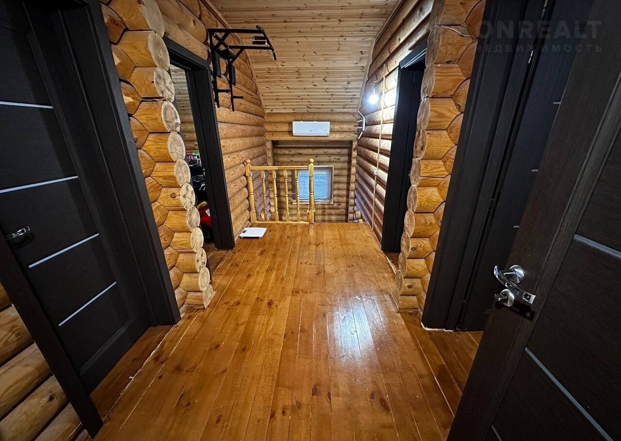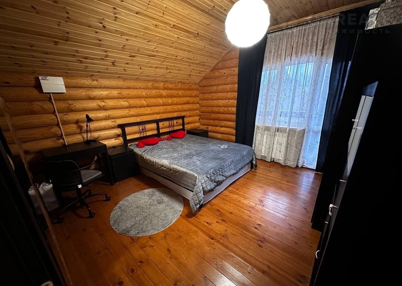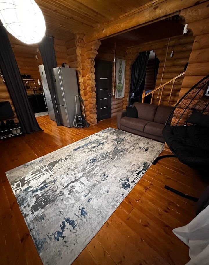 Дом построен из оцилиндрованного бревна.