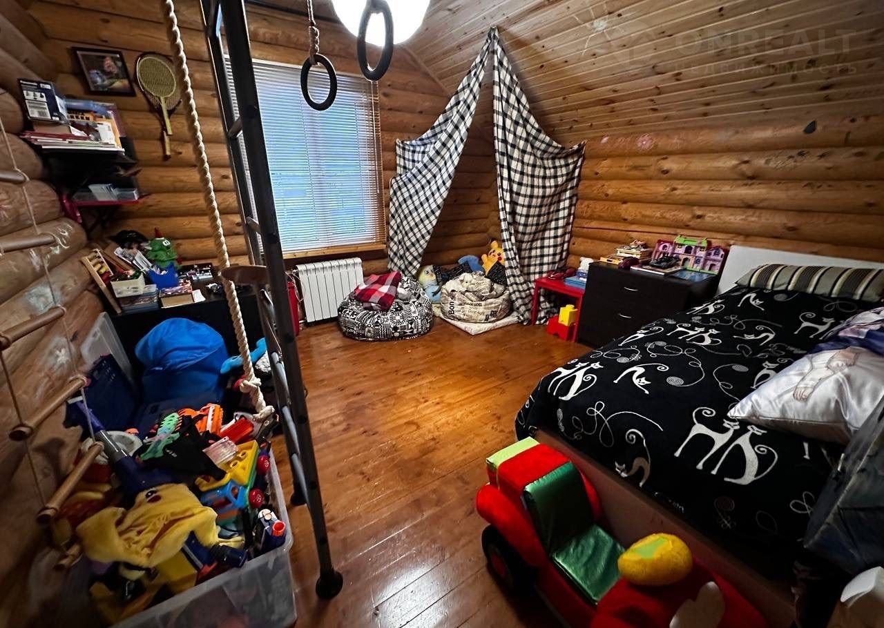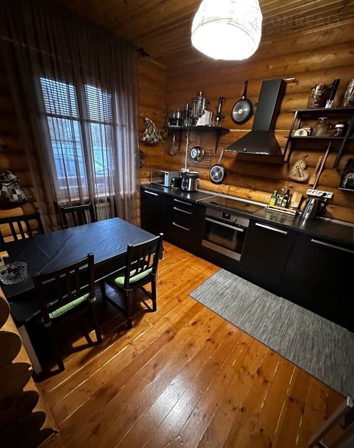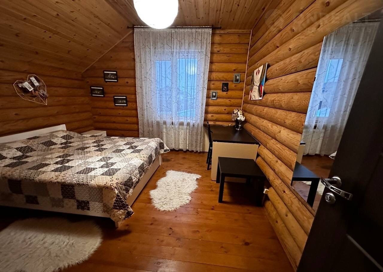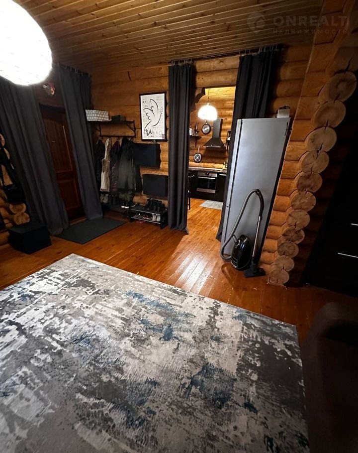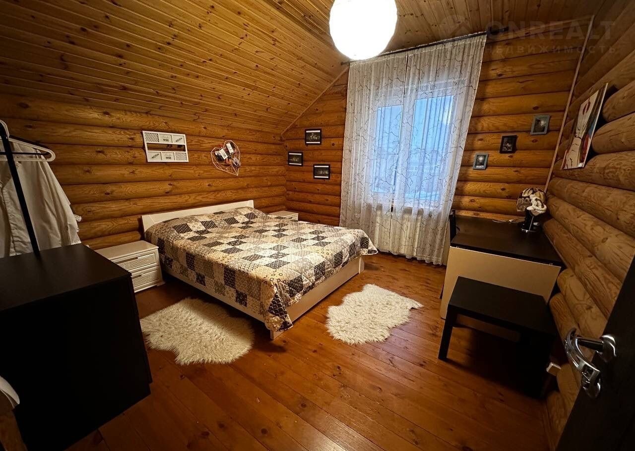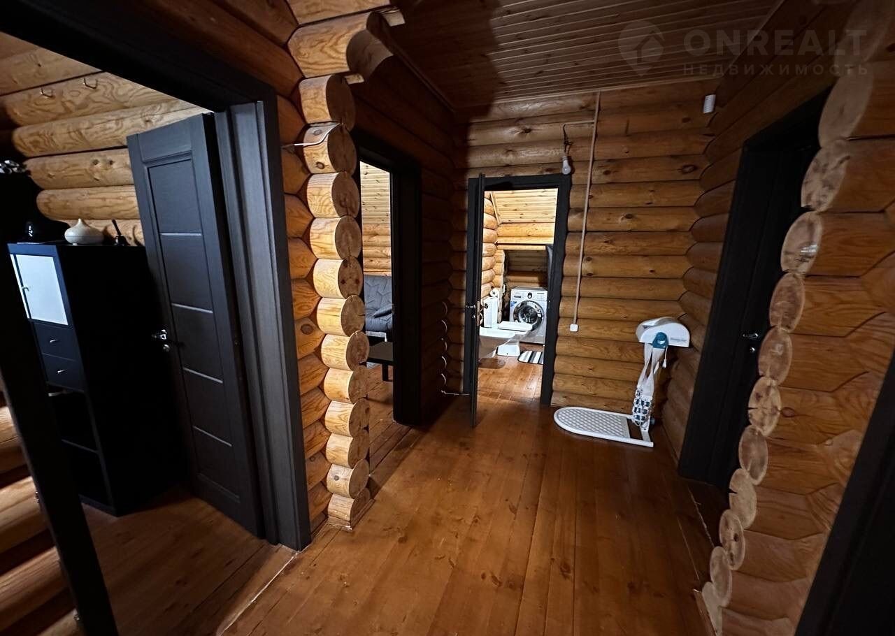 Дом построен из оцилиндрованного бревна.