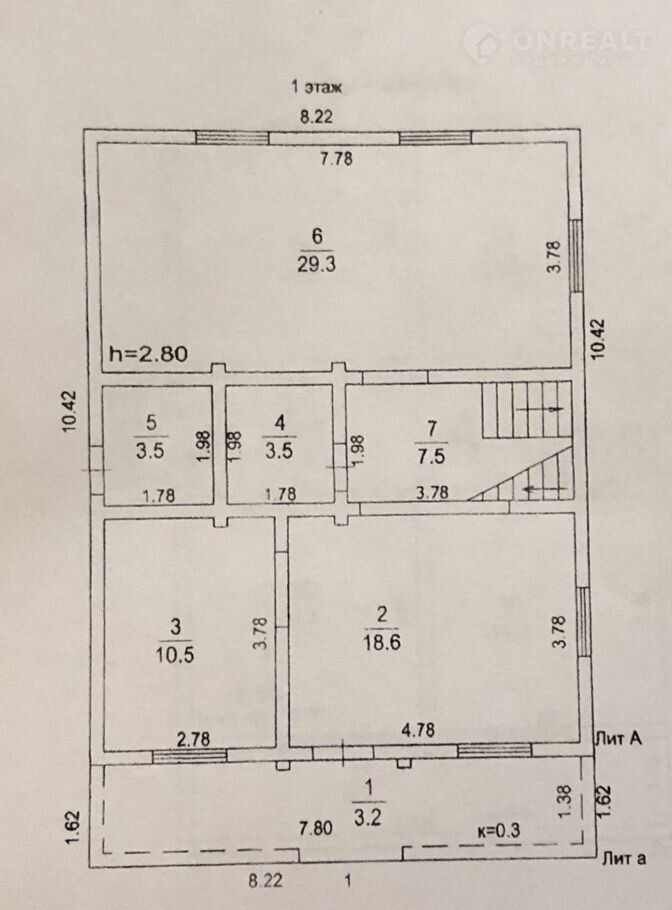 На первом этаже расположены кухня 12 м2, просторный зал 30 м2, большой коридор, в доме два санузла.