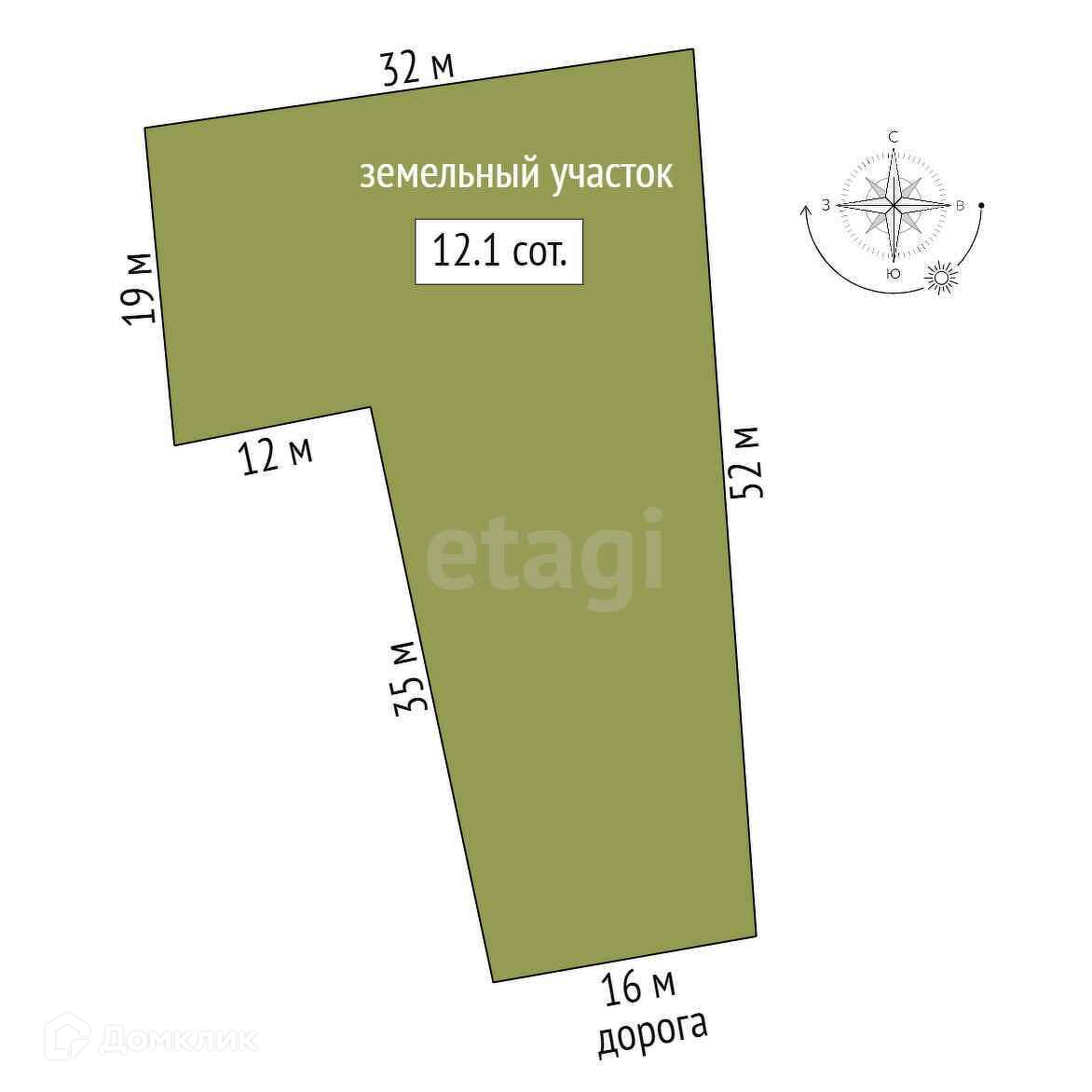 Площадь участка 12.1 сот.