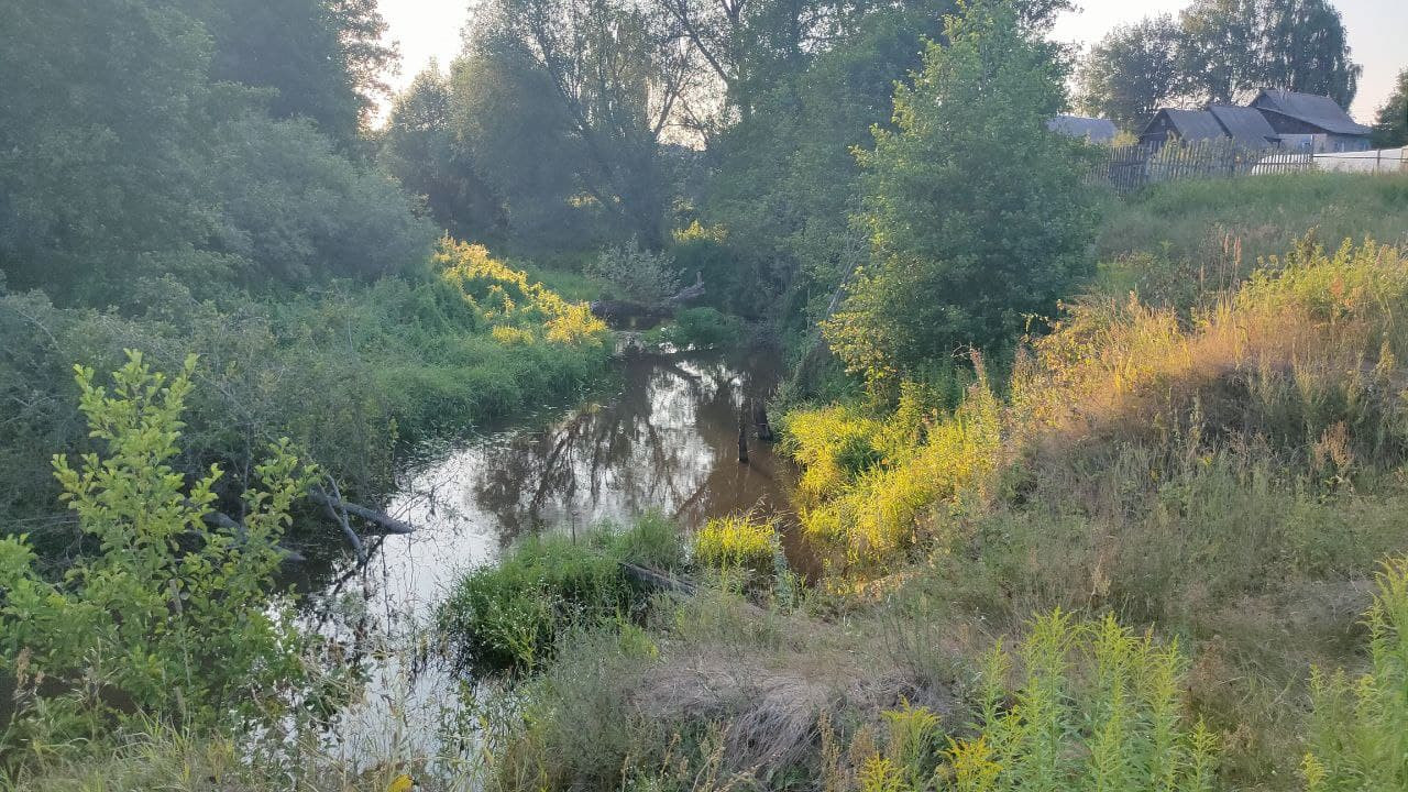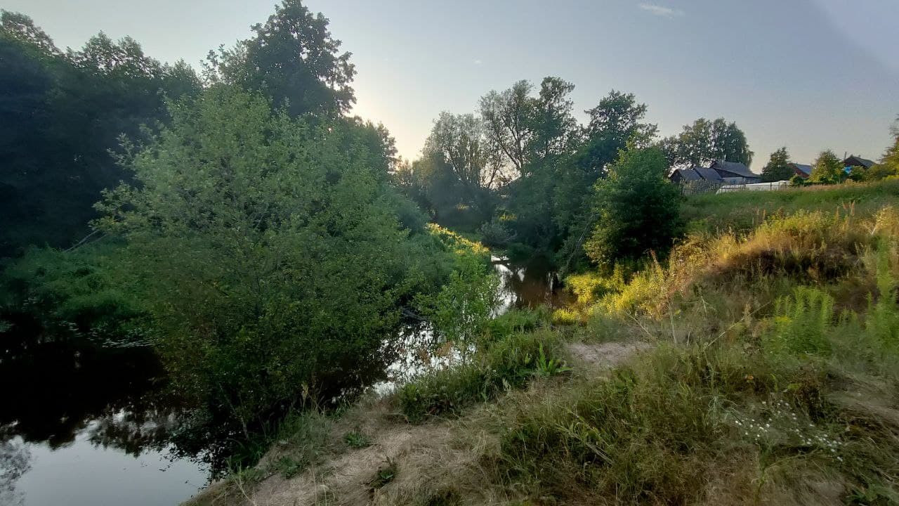 За участком находится очень живописная речка, где можно купаться и рыбачить.