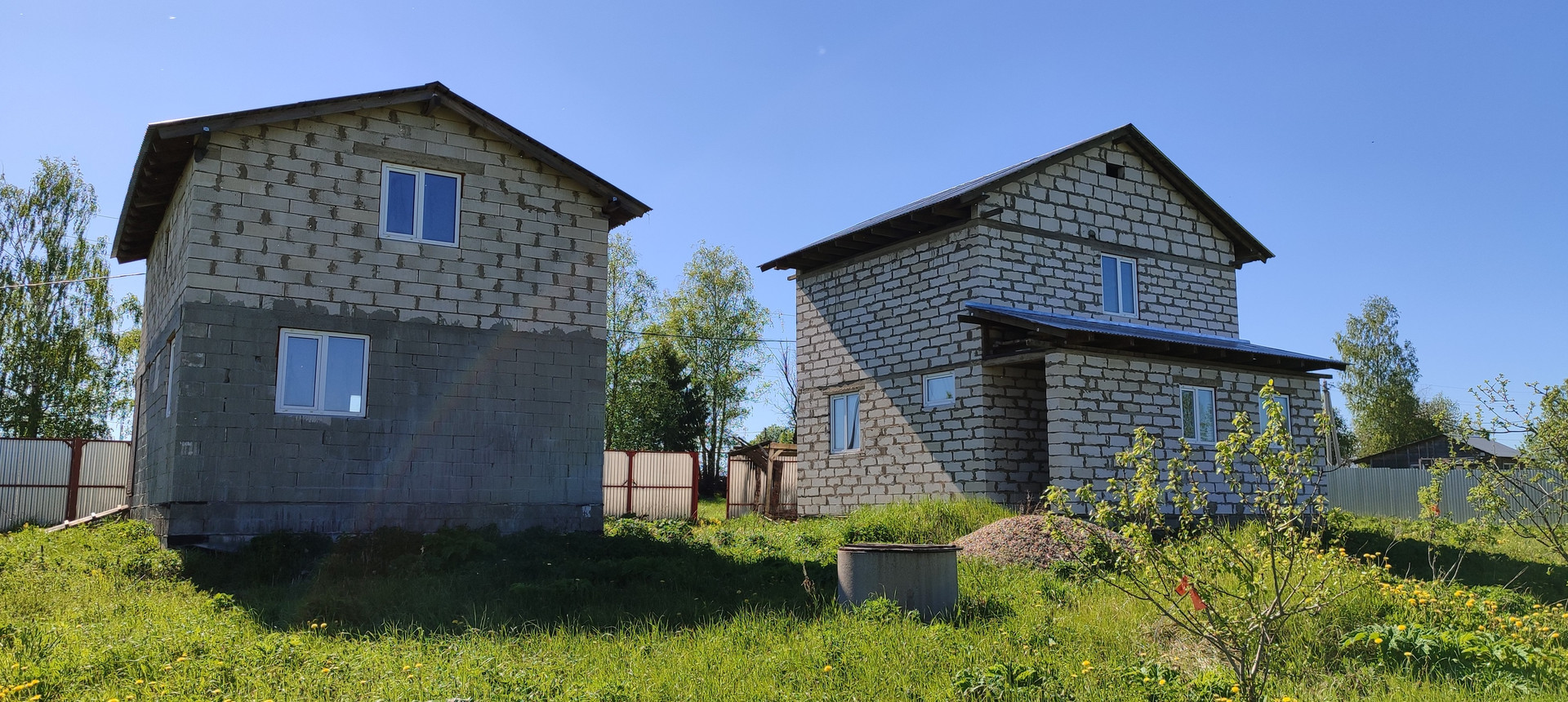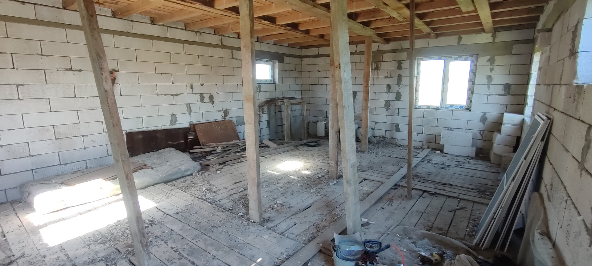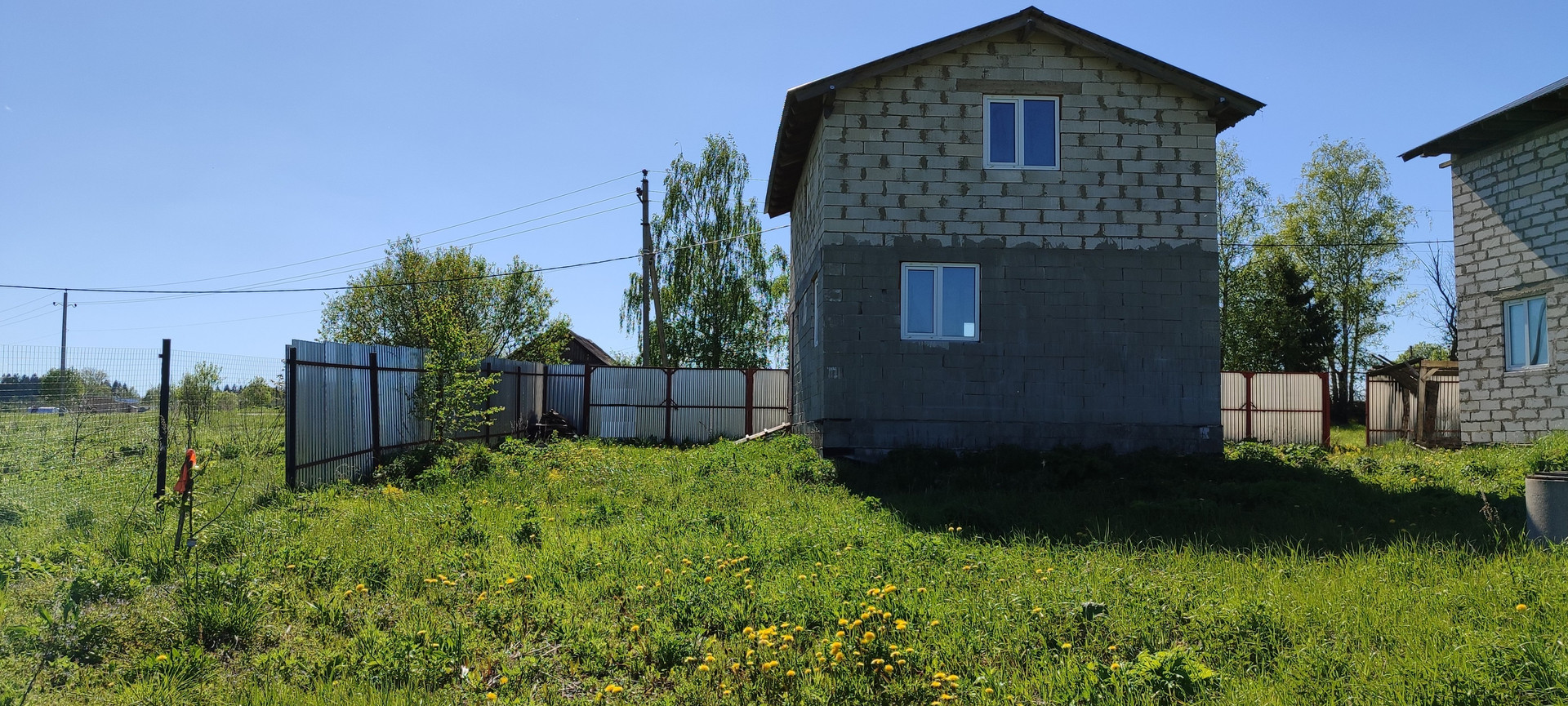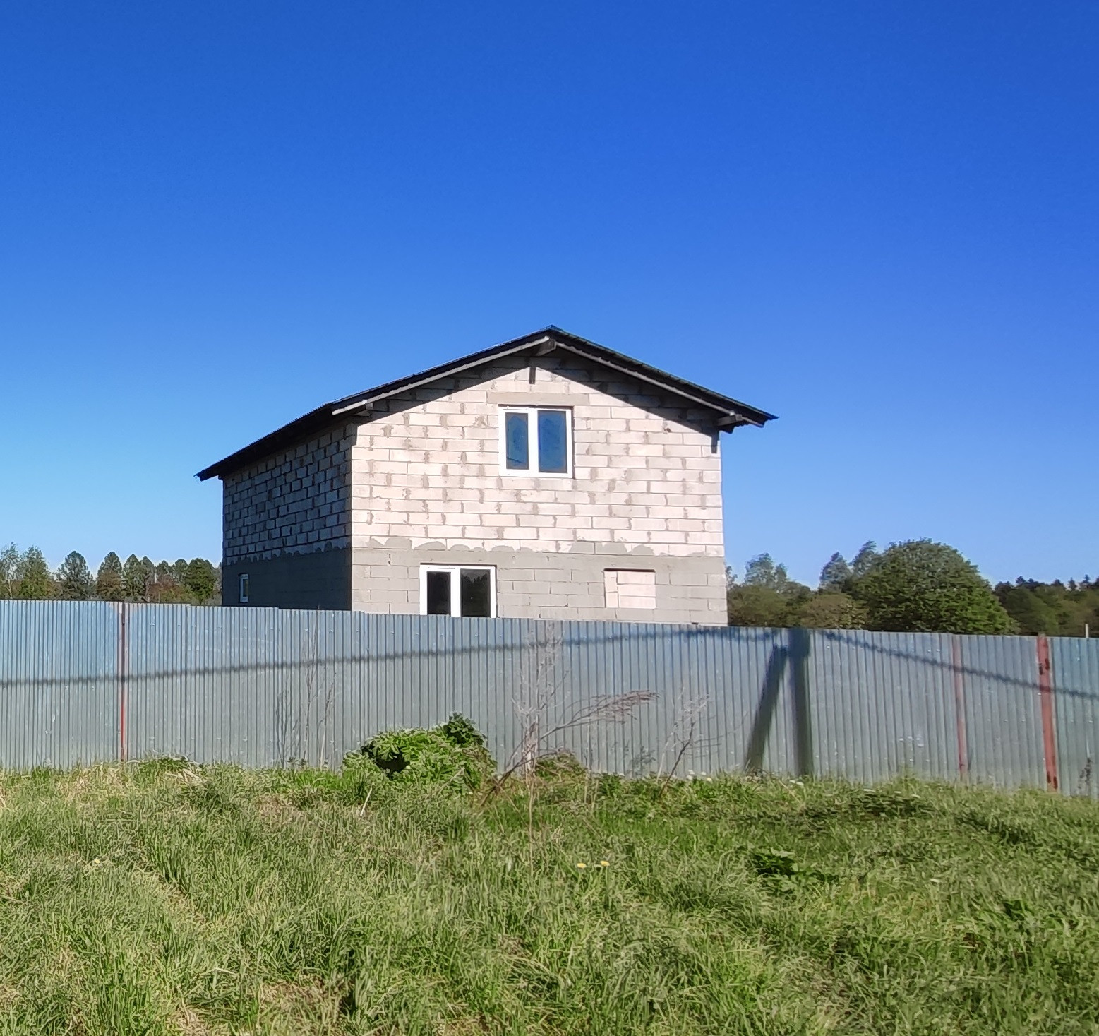 Фундамент ленточный. Материал стен - пеноблок. Установлены двухкамерные стеклопакеты. Входная дверь металлическая. Перекрытия между этажами из бруса. Крыша - профлист.
