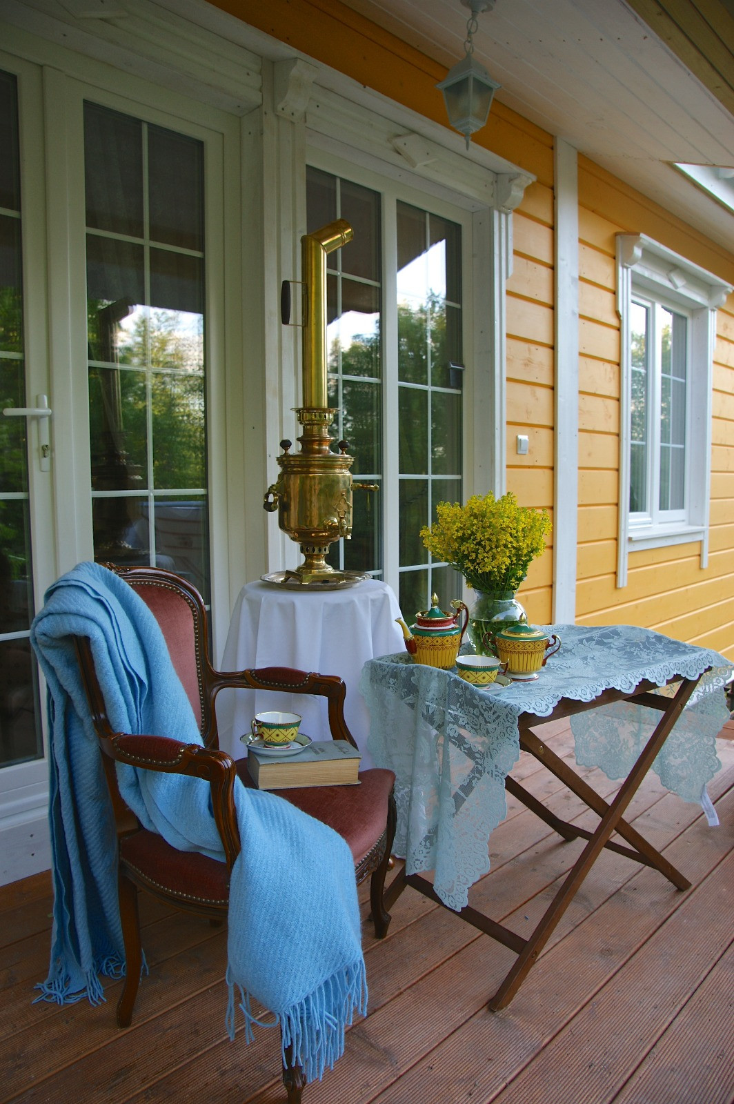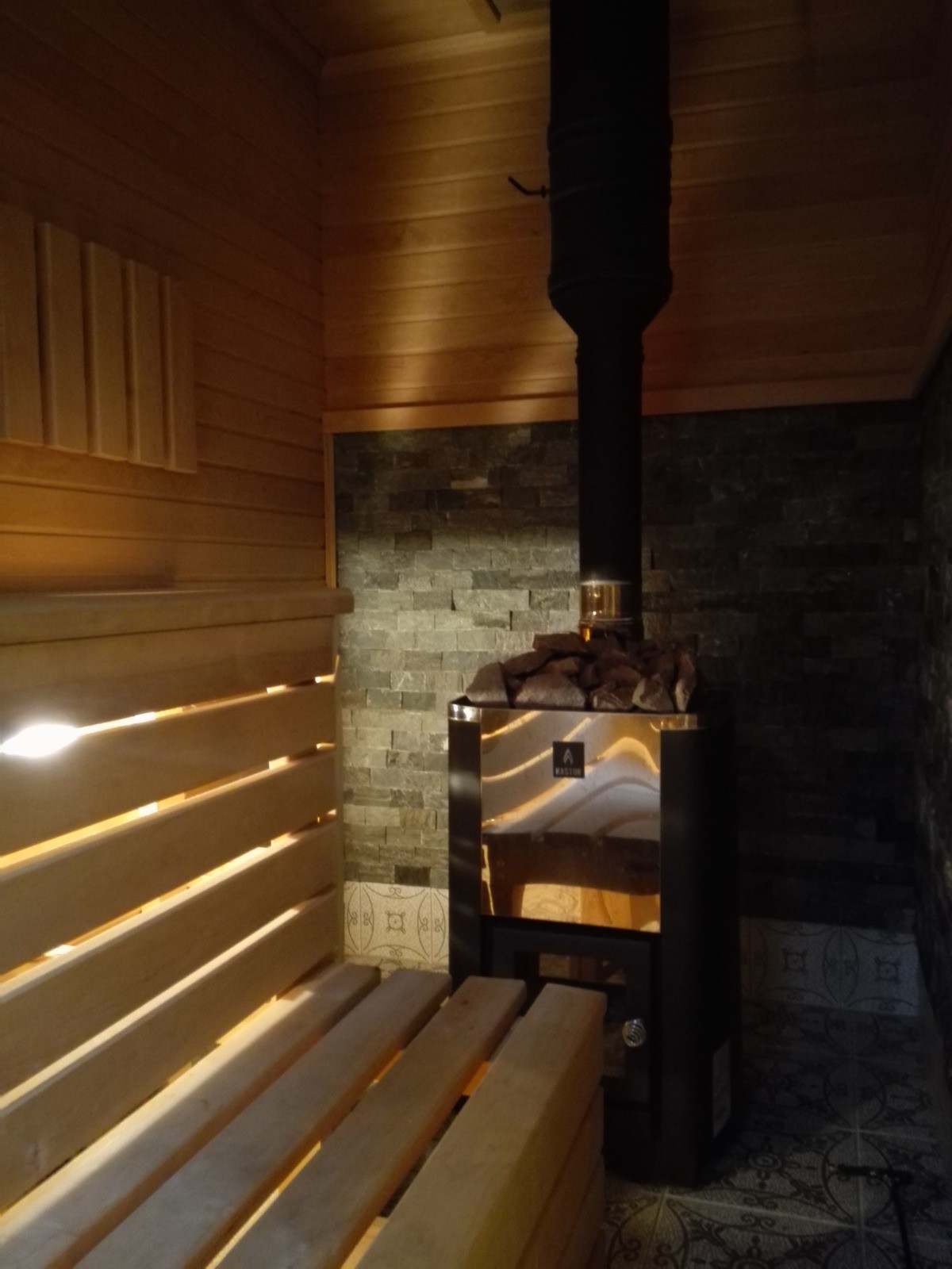Хозяйский дом, площадью 154,3 кв. м, с террасой, балконом и крыльцом - 189,4 кв. м. Дом предназначен для круглогодичного проживания. На первом этаже дома просторная очень светлая гостиная-столовая более 31 кв. м., гостевая спальня, гостевой туалет, кухня, душевая с санузлом и сауной. Из гостиной выход на огромную террасу площадью больше 20 кв. м. через распашные двустворчатые французские окна-двери. Кухня из коллекции Brocante/ Брокант с островом и деревянными столешницами полностью оборудована: газовая плита, посудомоечная машина, вытяжка и холодильник. В душевой две лейки со сливом в полу, смесители фирмы Oras оборудованы терморегуляторами, финская сауна из чёрной ольхи, благотворно влияющей на здоровье. В сауне установлена финская печь-каменка Kastor Karhu 20PK, в которой в качестве камней используется малиновый кварцит, дающий «легкий пар», этим он обязан своей высокой плотности и низкой теплопроводности, что, в совокупности, дает максимальную тепловую отдачу в течение длительного времени. Деревянная лестница из массива ведет из кухни в приватную зону второго этажа. С лестницы вы попадаете в рабочий кабинет-библиотеку с мансардными окнами, одно из которых расположено прямо над письменным столом. Зона библиотеки переходит в зону гостиной с печкой-камином, откуда можно попасть в спальню или выйти на балкон с видом на озеро. В гостиной установлена печь-камин Dovre 250CBS от эксклюзивного норвежского бренда Dovre, который называют идеальным производителем. На втором этаже есть своя ванная комната, но она не завершена, так как не смогли определиться с самой чашей. Думали ставить короткую сидячую ванну поперек или обычную вдоль. Но все коммуникации подведены, нужна только чистовая отделка. С ванной комнатой граничит небольшая полностью оборудованная системой хранения гардеробная комната. В просторной спальне есть также свой выход на балкон через распашные французские окна в пол, а также большой встроенный шестистворчатый шкаф. Полы в гостиной и спальне первого этажа - массив дубовой доски, толщиной 2 см. На кухне, в санузлах и коридоре - плитка. На втором этаже - массивная сосновая доска 4,5 см толщиной. В доме есть своя котельная, в которой установлено два котла: газовый Buderus Logamax U072-24К, как основной, и твердотопливный котел верхнего горения (длительного горения) LIEPSNELĖ L40U. При желании можно заменить один из котлов на электрический, но мы не видели в этом необходимости, разве что вместо дровяного, чтобы освободить дополнительное место, но недостатка в нем в доме и так пока нет. В котельной расположен главный электрический щит дома. Отопление первого этажа - водяные теплые полы с терморегулятором в котельной, поэтому в доме всегда тепло и можно даже в сорокоградусные морозы спокойно ходить босиком по плитке на полу. На втором этаже - элегантные швейцарские радиаторы Zehnder Charleston Completto под каждым окном и перед францускими окнами-двери на балкон встроенные в пол бельгийские радиаторы JagaRus Mini Canal с деревянными решетками. В доме смонтирована наружная ретро-проводка с фарфоровыми изоляторами, выключателями и розетками, оплетка проводов - шелковая, светло-бежевого кремового цвета. Есть переключатели, которые позволяют управлять светом в больших помещениях и на лестнице с разных входов. Также установлена внешняя антенна на резерв ВОЛС, поэтому в случае аварии у Ростеле