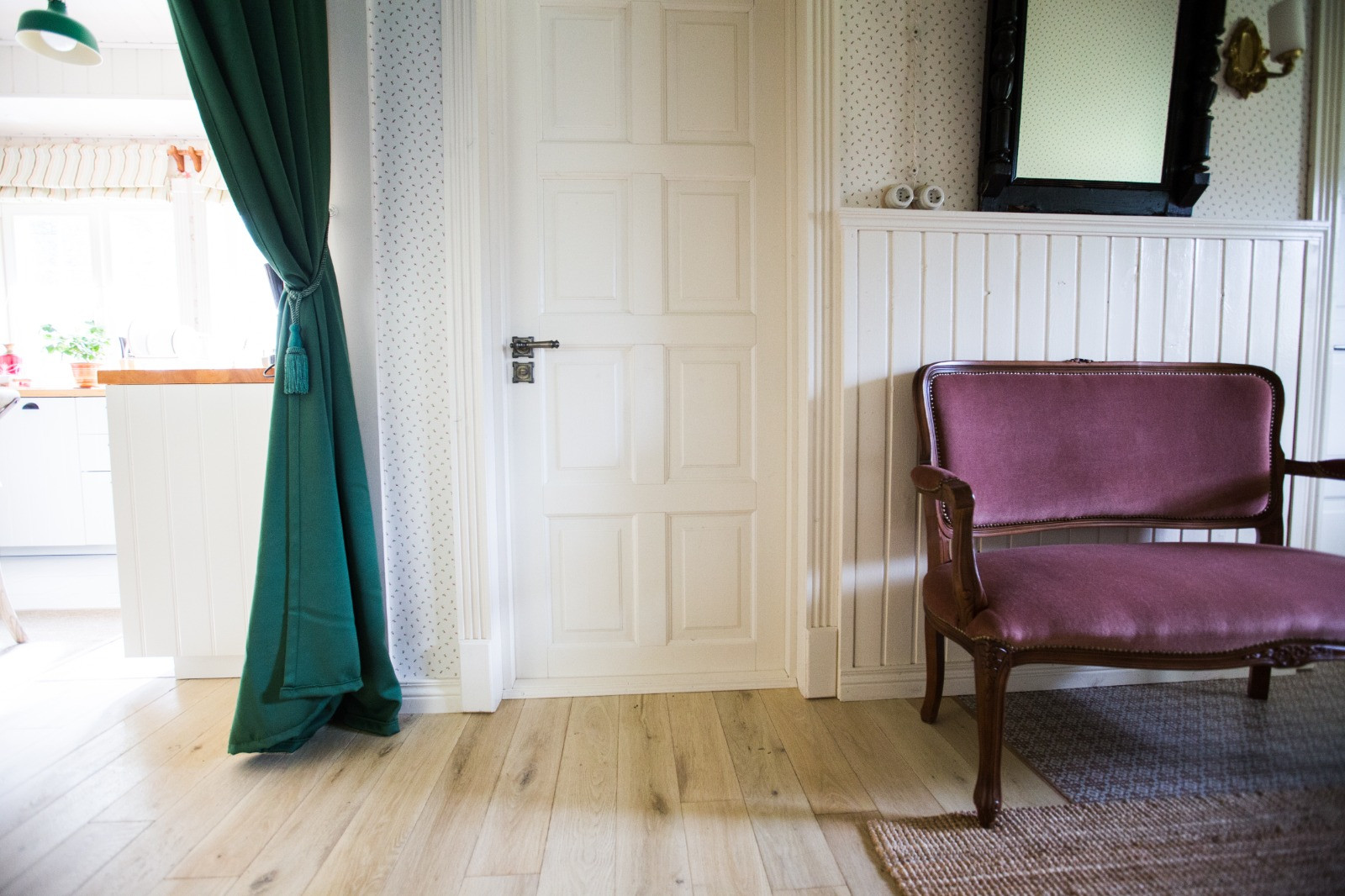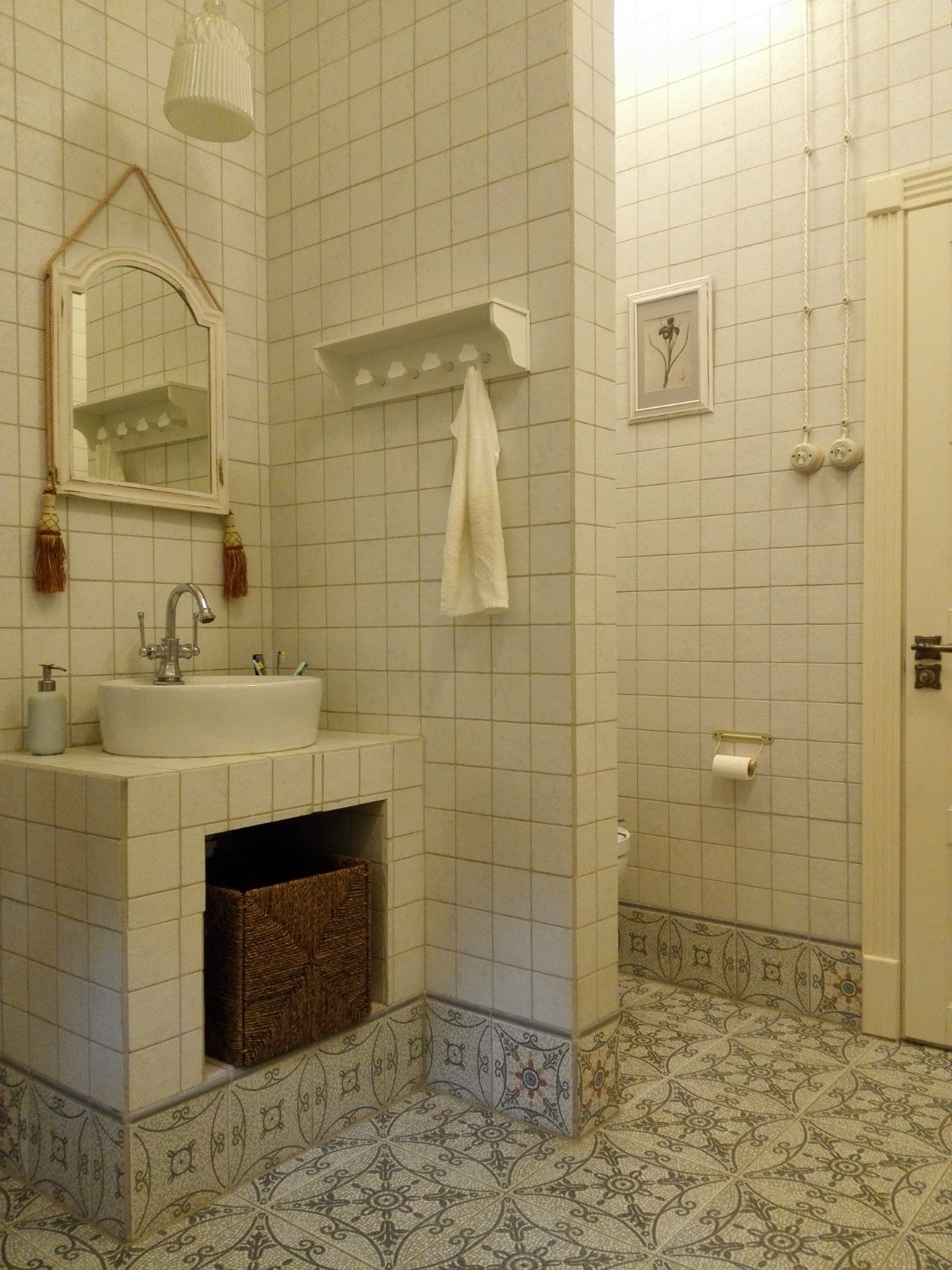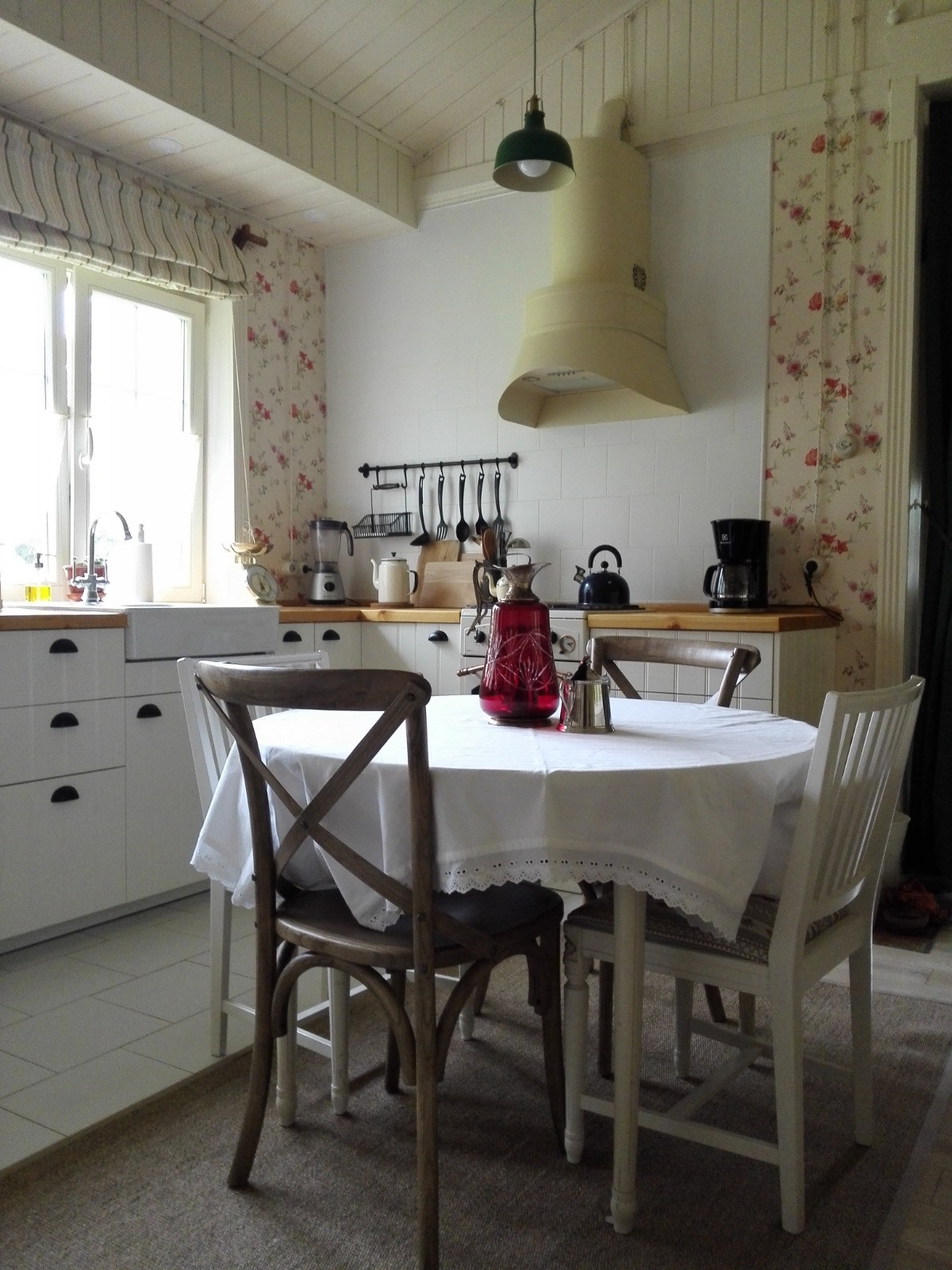В доме есть своя котельная, в которой установлено два котла: газовый Buderus Logamax U072-18К, как основной, и твердотопливный котел верхнего горения (длительного горения) LIEPSNELĖ L10U. При желании можно заменить один из котлов на электрический, но мы не видели в этом необходимости, разве что вместо дровяного, чтобы освободить дополнительное место, но недостатка в нем в доме и так пока нет. В котельной расположен главный электрический щит дома. Отопление - водяные теплые полы с терморегулятором в котельной, поэтому в доме всегда тепло и можно даже в сорокоградусные морозы спокойно ходить босиком по плитке на полу. В доме смонтирована наружная ретро-проводка с фарфоровыми изоляторами, выключателями и розетками, оплетка проводов - шелковая, светло-бежевого кремового цвета. Есть переключатели, которые позволяют управлять светом в больших помещениях и на лестнице с разных входов.