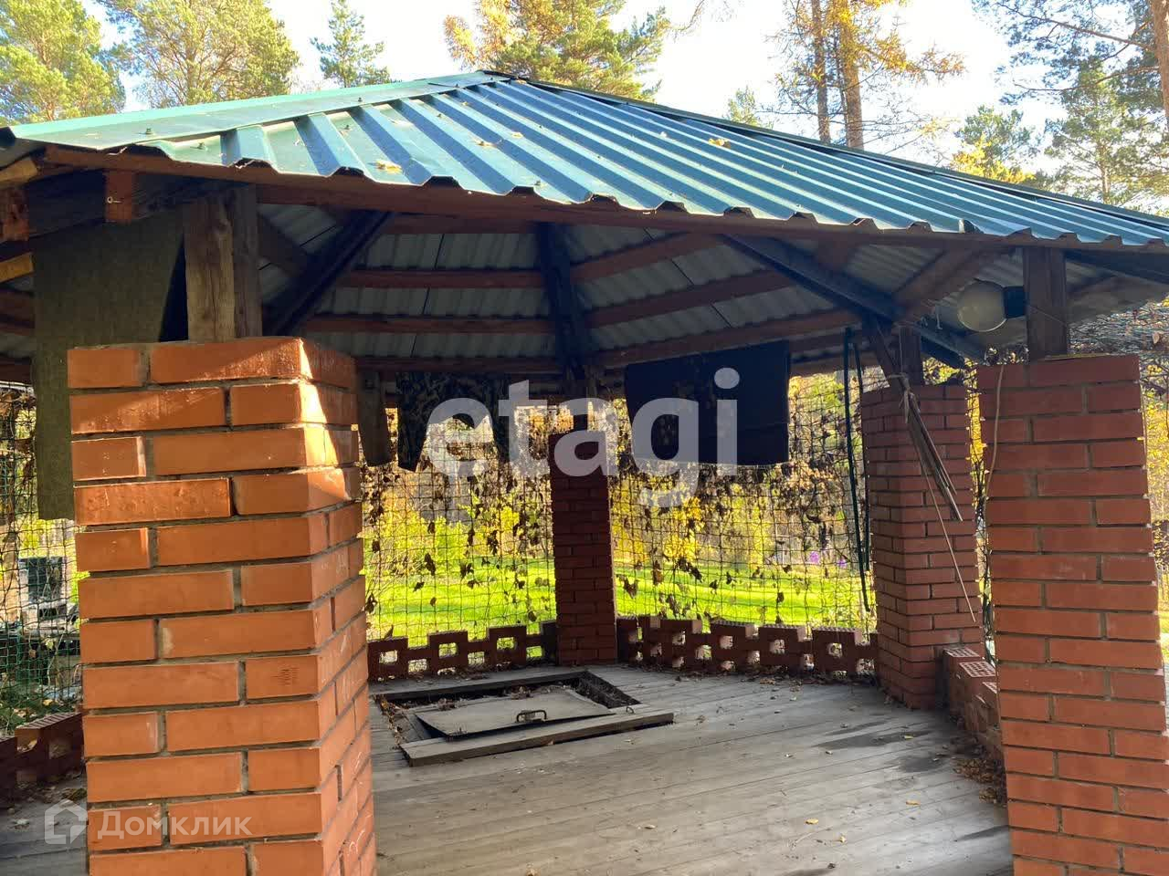 На участке есть большая кирпичная беседка с мангальной зоной, под беседкой расположен погреб 2 на 3 метра.