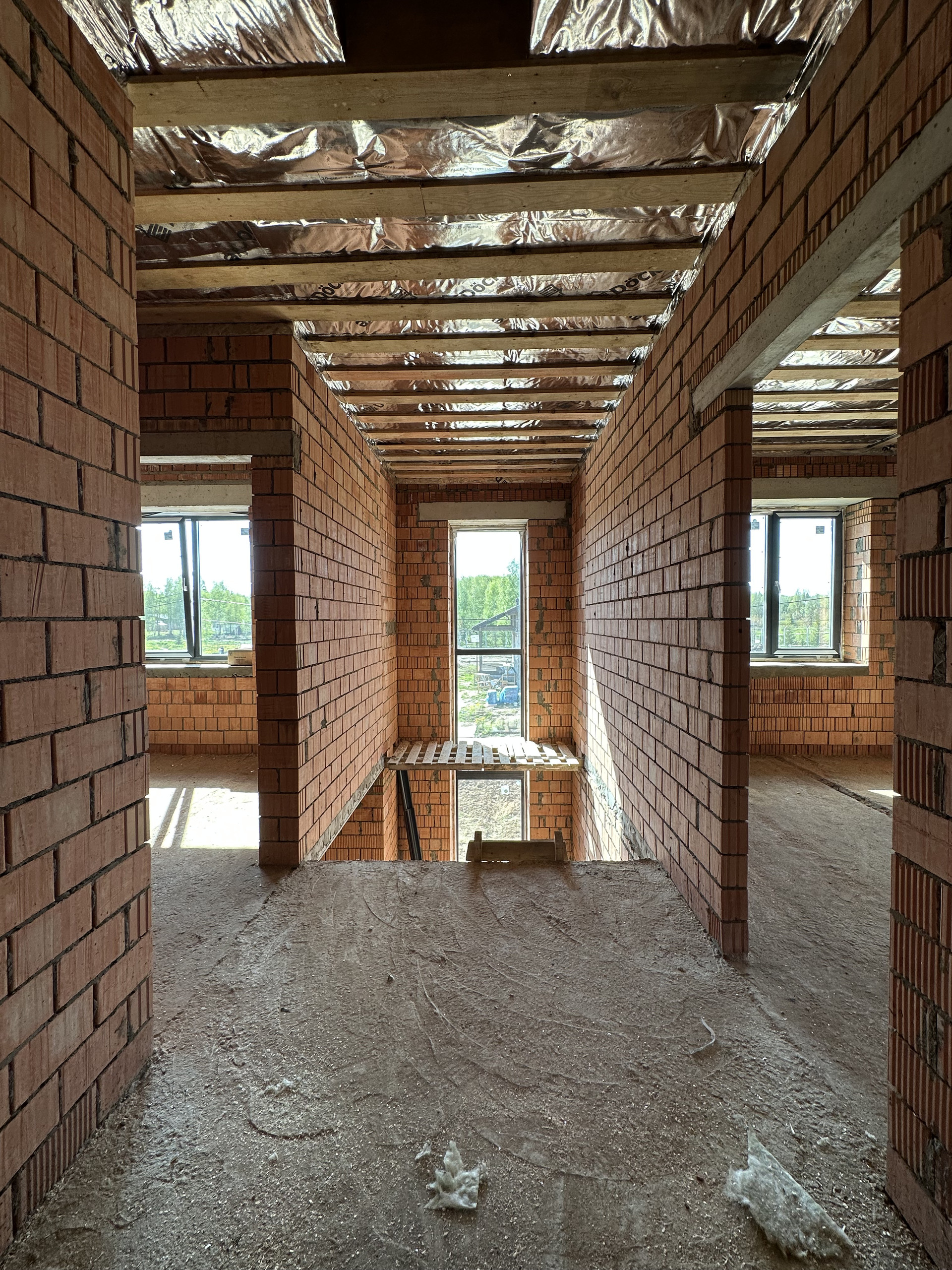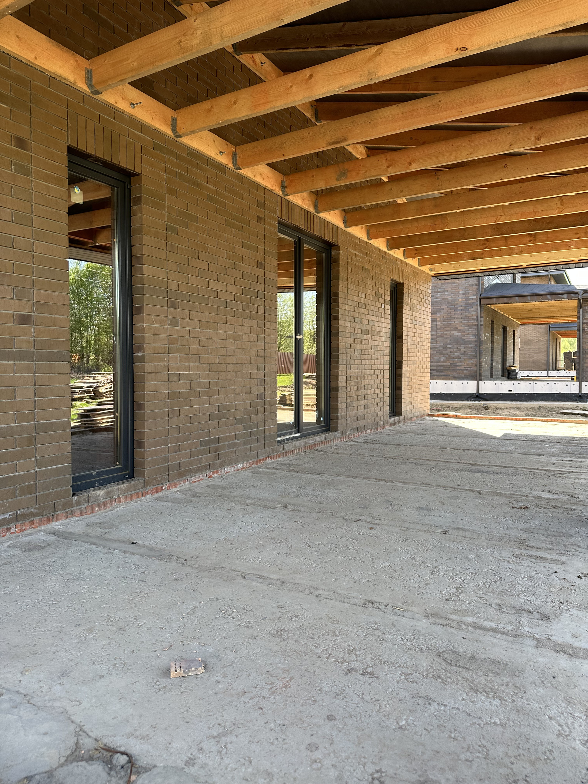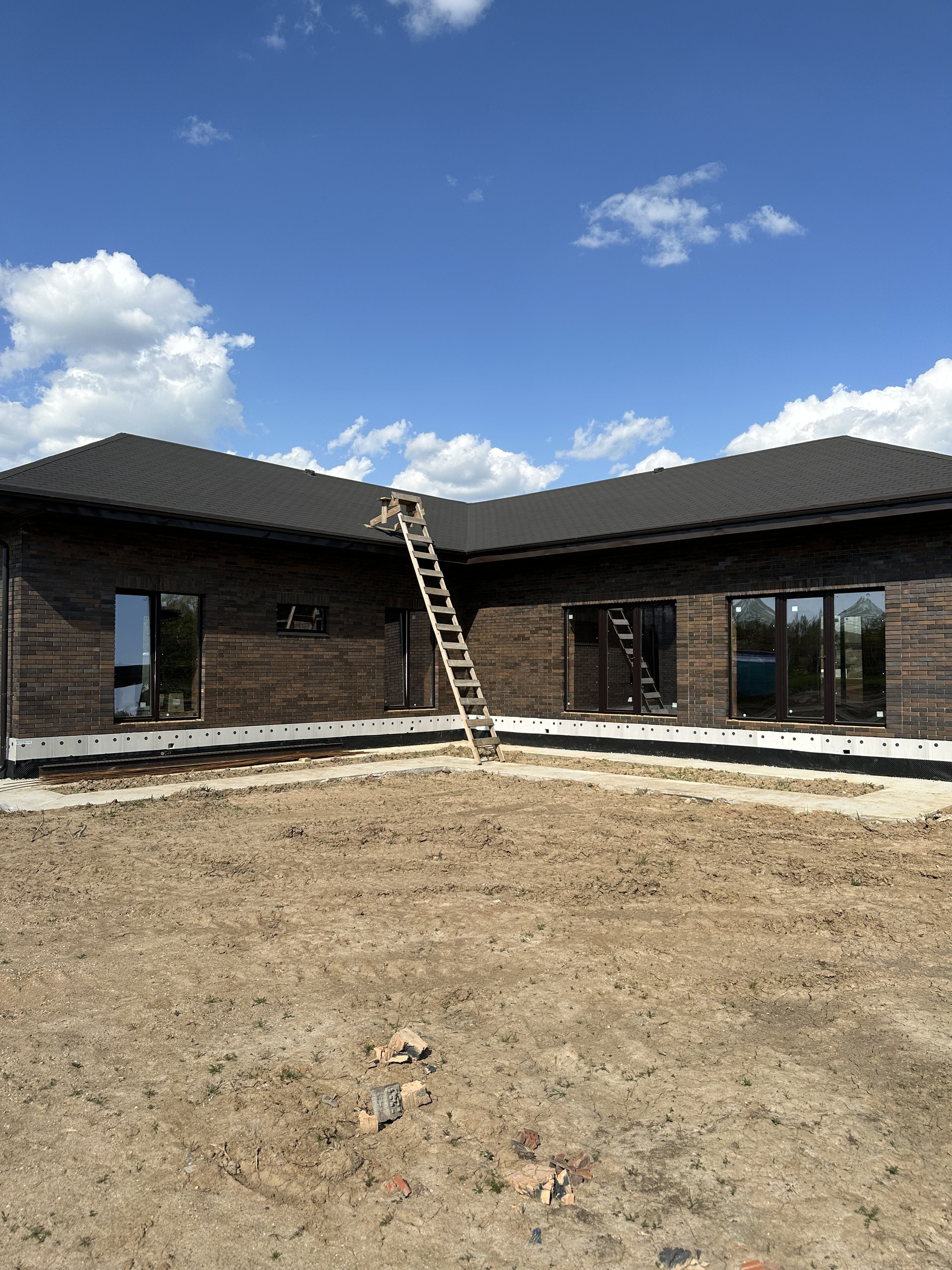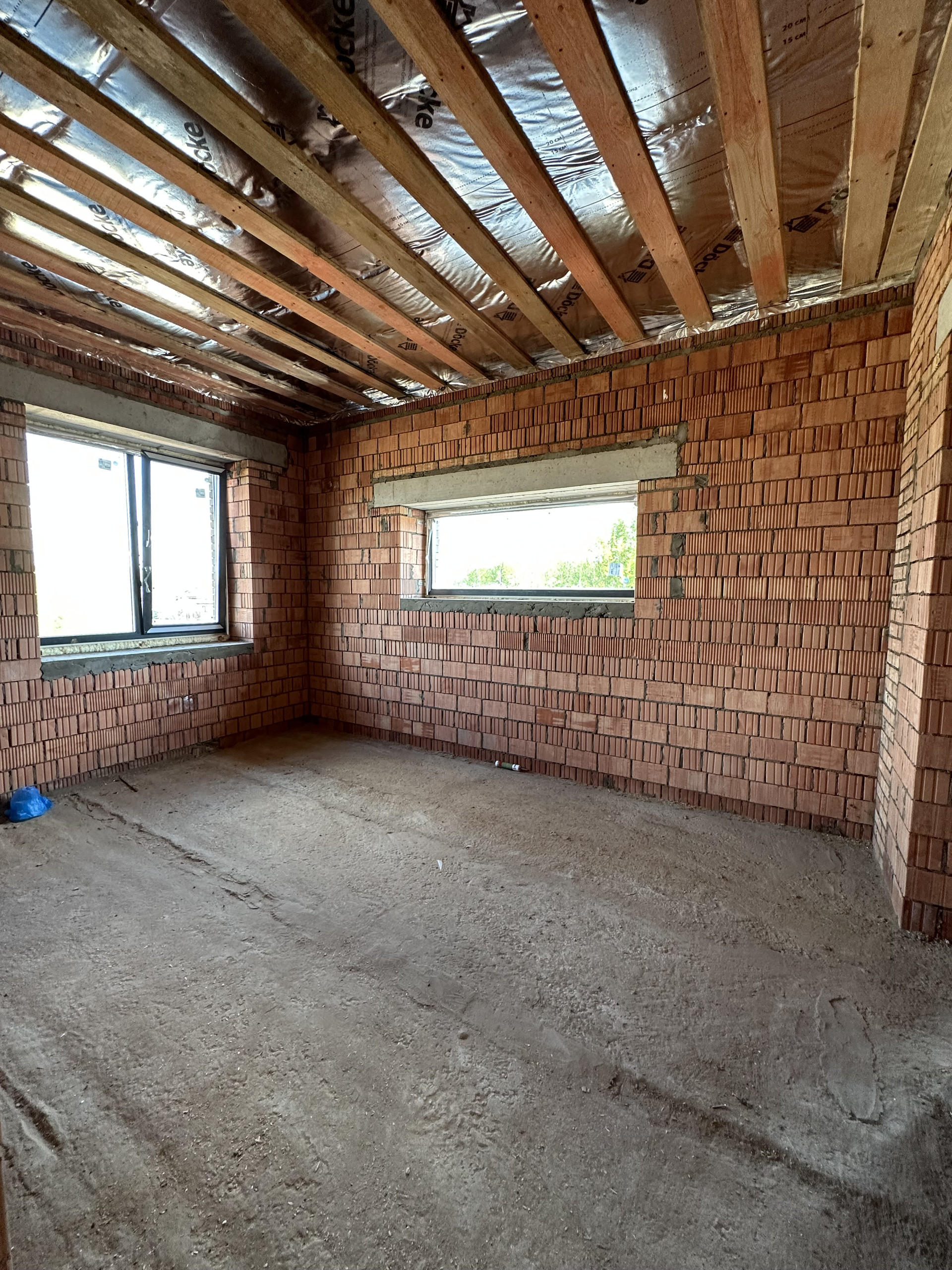 Дом состоит из керамических блоков Porotherm, межэтажные перекрытия монолитные, толщина стены до слоя черновой штукатурки 50 см. Фасадная отделка из дорогого керамического кирпича Braer, цвет шоколад. Высота потолков первого этажа 3,20 м до заливки. Окна с ламинацией 70 мм. Высота потолков 2 го этажа 3м (до заливки). Мягкая кровельная черепица docke premium. По периметру дома установлена система водоотлива, выполнен дренаж по участку.