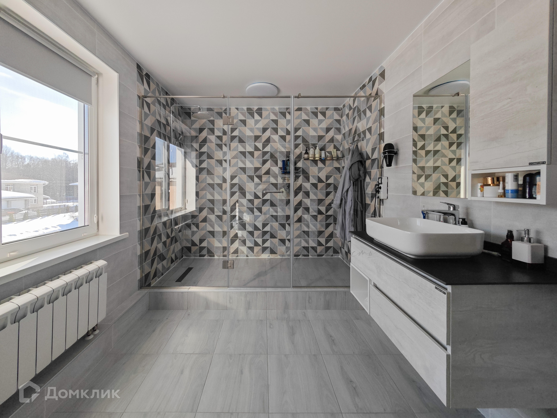 Пол – кварцвиниловое покрытие и керамогранит.