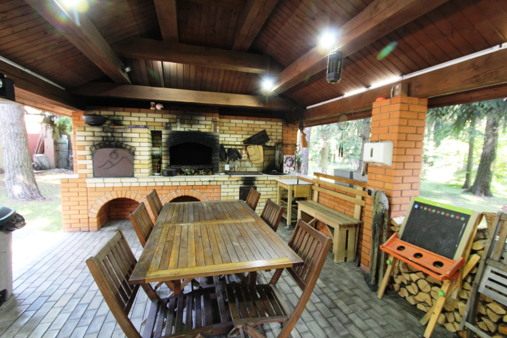 Дом оборудован системой вентиляции и кондиционирования, есть видеонаблюдение и сигнализация. Гараж на 2 машины и навес для 2-х авто. При ремонте использованы высококачественные материалы; в отделке: немецкий паркет, итальянская плитка и свет, полы массив Мербау, отделка лестниц дубом, кровля медная. Вся итальянская мебель, бытовая техника и оборудование входят в стоимость. Продажа под ключ!