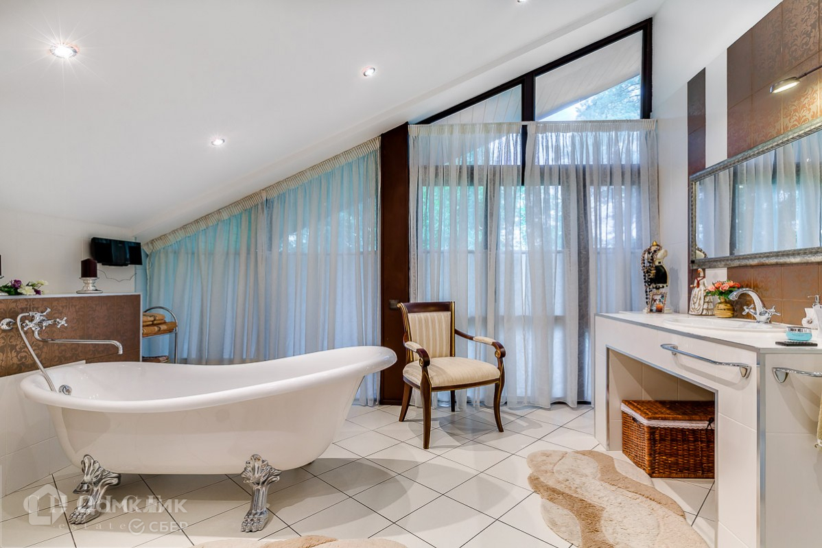 Один из главных плюсов этого дома – его роскошное панорамное остекление, которое расширяет внутренне пространство, наполняет его солнечным светом, а великолепные виды за конами становятся идеальным продолжением интерьера. В доме выполнена высококачественная отделка под ключ, основной концепт которой – это удобство и экологичность. В оформлении комнат использованы ценные породы дерева и натуральный камень. Установлена дизайнерская мебель и бытовая техника ведущих брендов. Особый уют создает дровяной камин в гостиной.