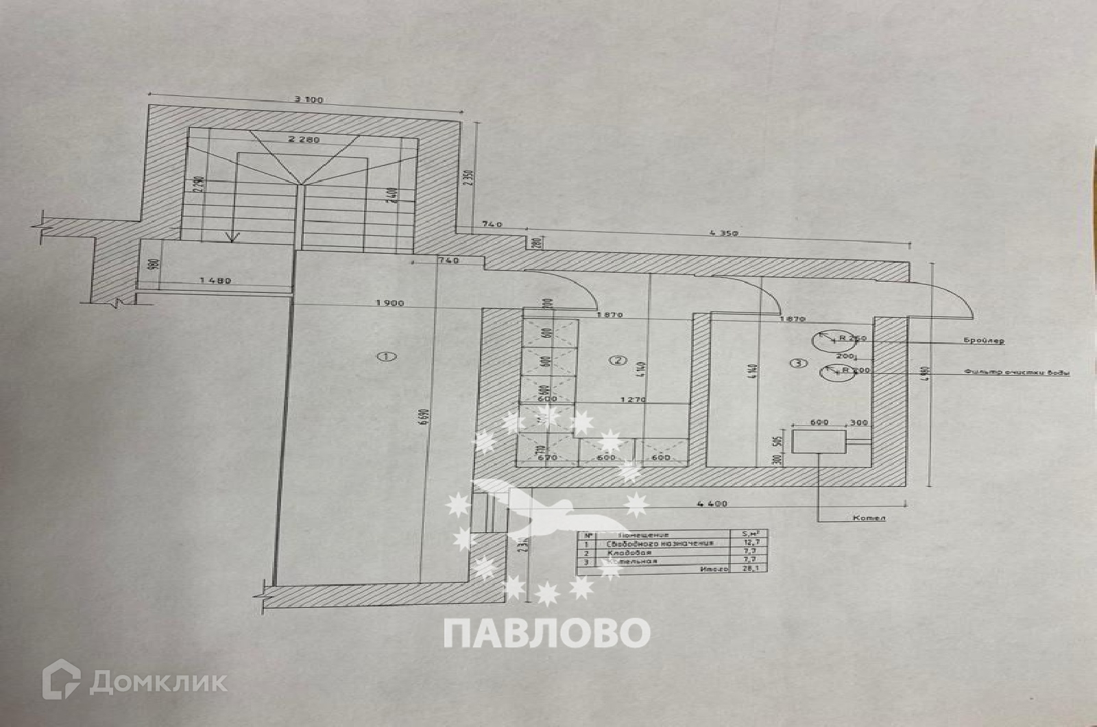 Цоколь - котельная, кладовая, помещение свободного назначения