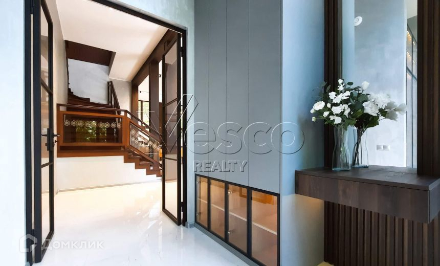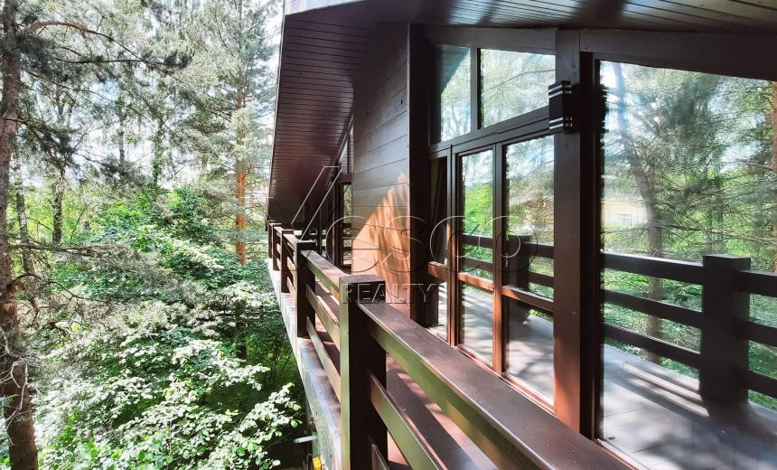 Дом 2009 года постройки (2021 полная реконструкция) с новым современным ремонтом. Дерево везде - и в отделке и за окном на участке. Использовано красивое освещение трековыми светильниками, уличное освещение оборудовано датчиками.