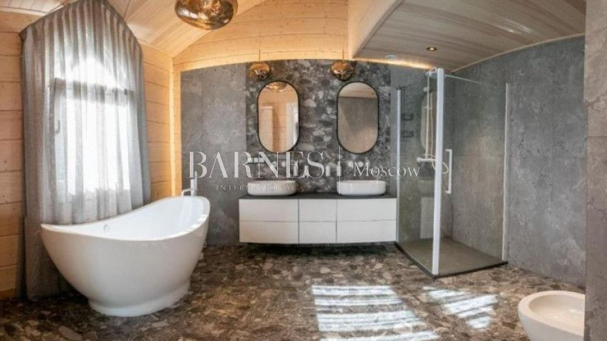 Изысканный авторский проект. В отделке использованы натуральные и редкие материалы, мебель из авторских коллекций Италии, Франции и Германии, премиальная профессиональная техника. Все здесь создано для максимального уровня комфорта своих владельцев. На участке: баня, фонтан, гараж с квартирой для персонала.