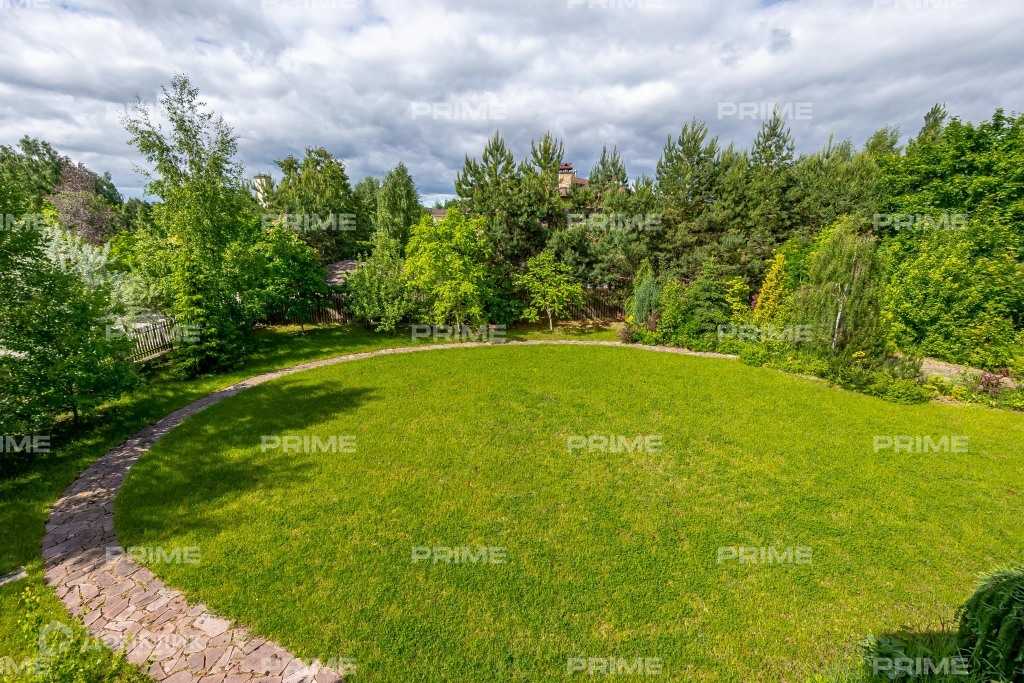 Дом расположен на участке с растущими молодыми березами, соснами, кленами, вязами, проложенными красивыми мощеными дорожками, высаженными газонами и цветниками.