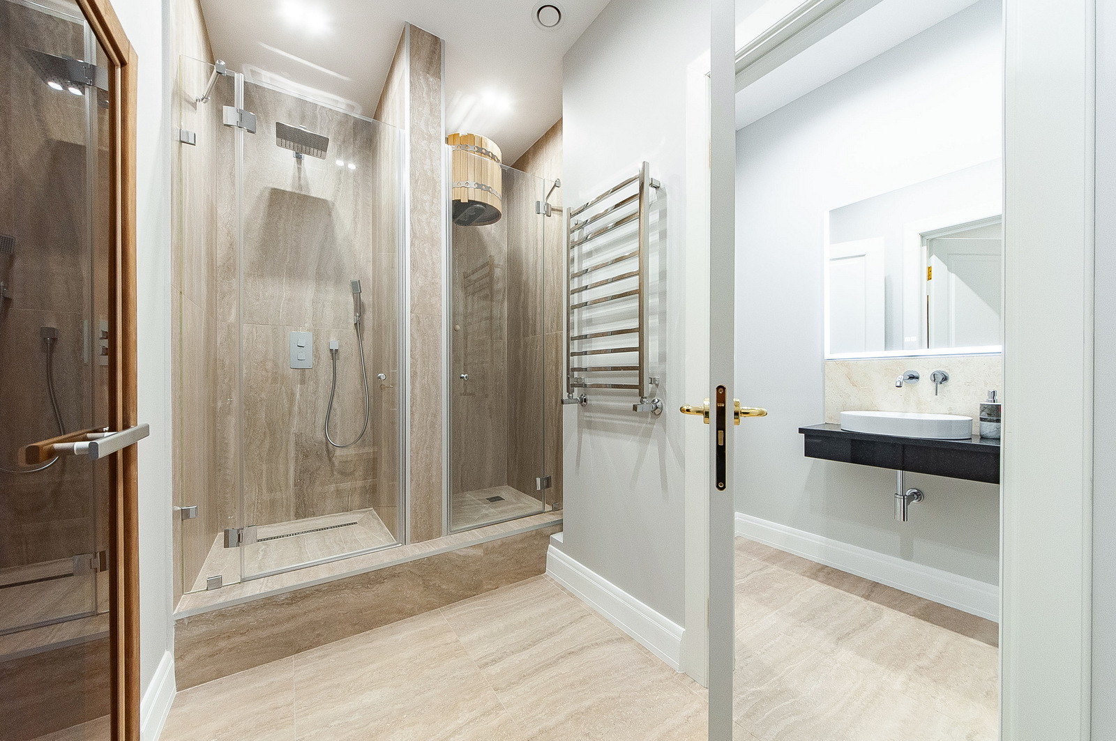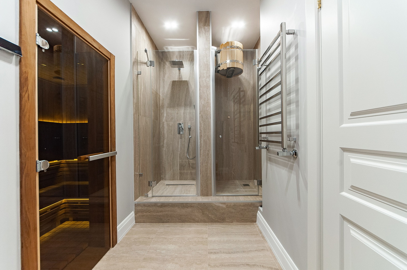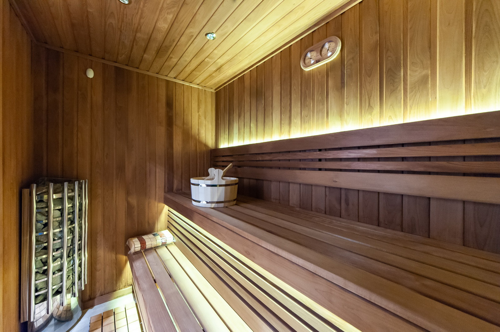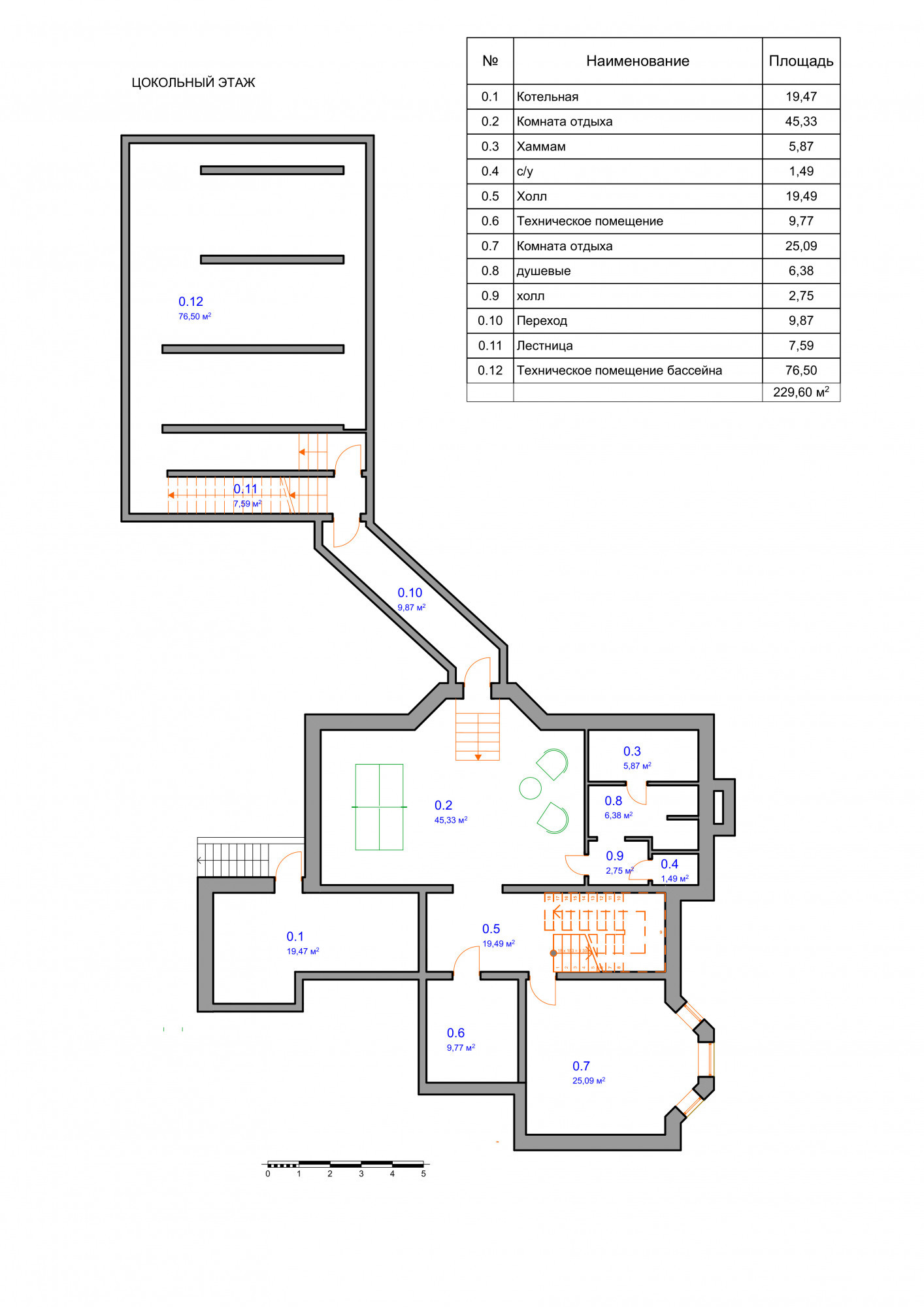 Цоколь: котельная с отдельным входом, комната отдыха - гостиная, сауна, душ, спальня, с/у, постирочная, тех. помещение. Теплый переход в отдельное здание бассейна (бассейн 8х5 м с противотоком);