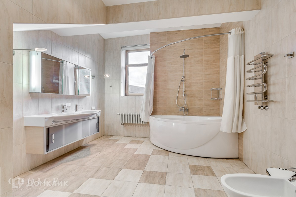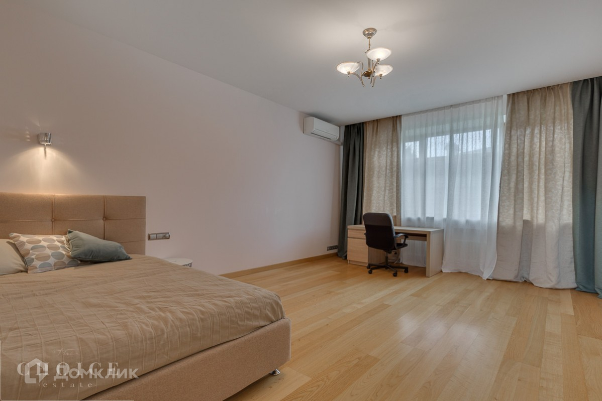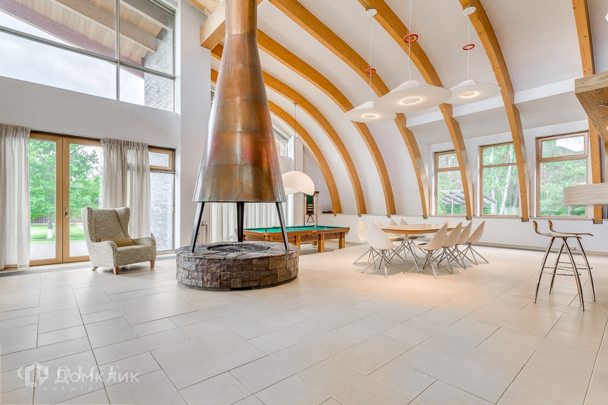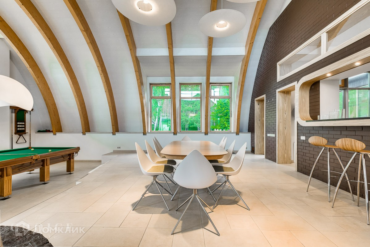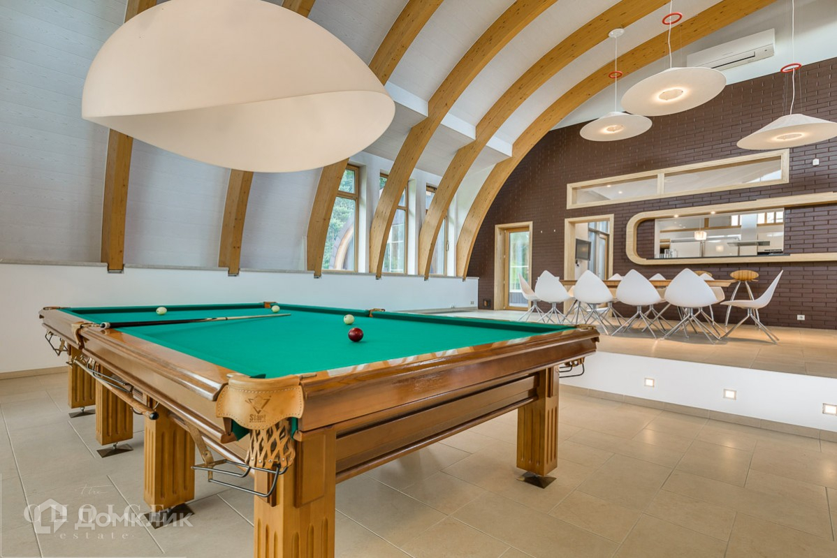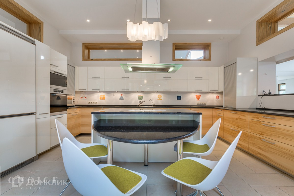 Четырехэтажный дом в современном стиле под ключ с панорамными окнами, на тихой улице. Здание построено из экологически чистых материалов по авторскому проекту. Площадь дома – 554 м², участка – 124 соток. Дом с отделкой и техникой, без мебели. В коттедже работают сплит-системы, установлены теплые полы. У дома организованы зона барбекю и теннисный корт.