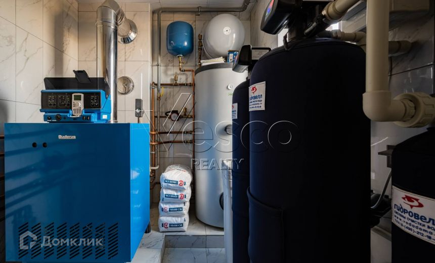 Все действующие центральные коммуникации: водопровод, канализация, газ, электричество 15 кВт. В доме установлен бойлер Buderus, имеется система очистки воды и система канально-приточной вентиляции.