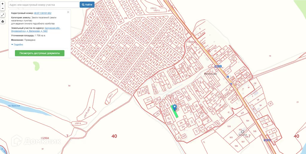 Продается земельный участок Калужская область, Жуковский район, деревня Величково, 17 соток, ИЖС, кадастровый номер 40:07:130101:652