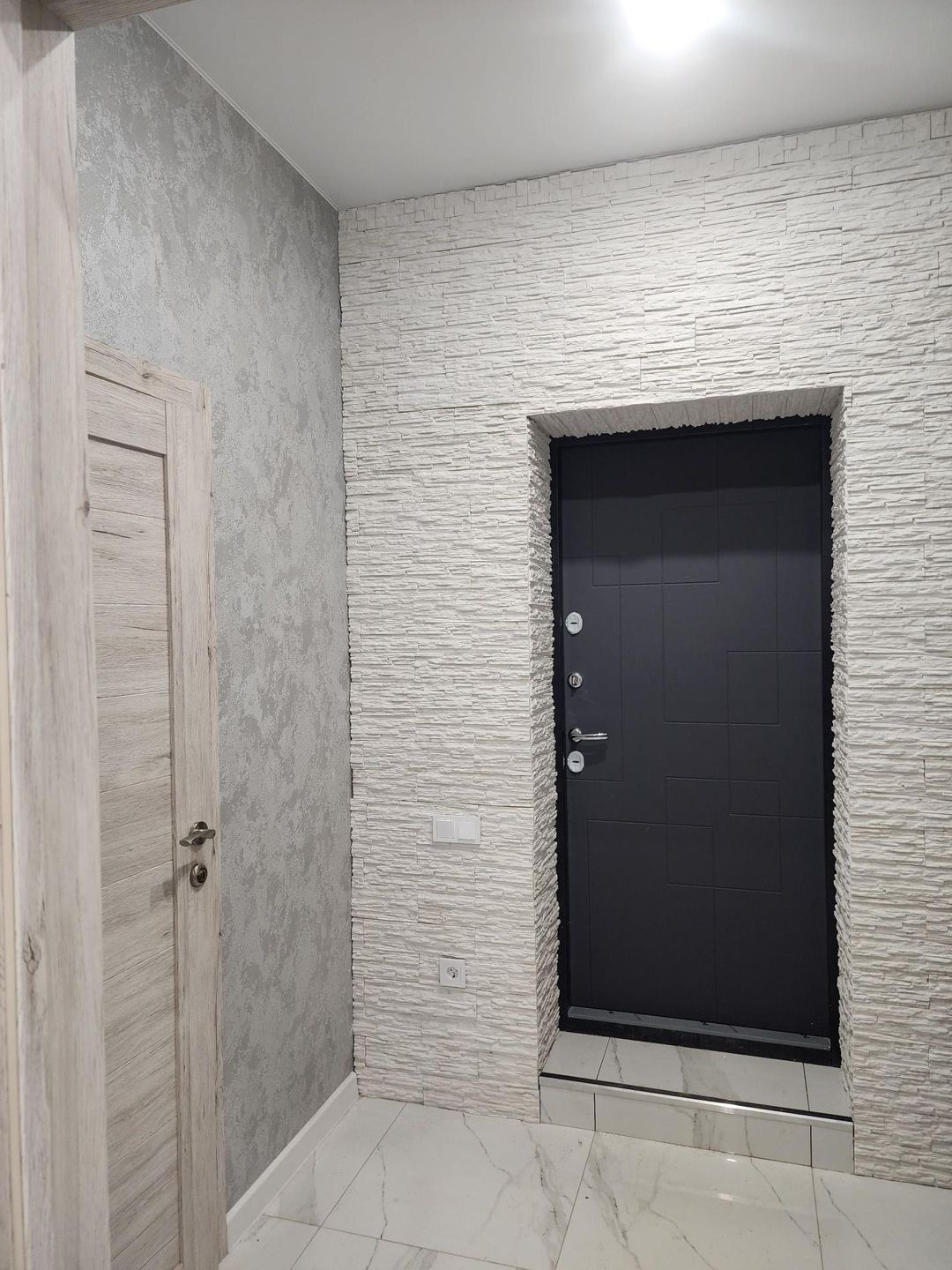 Стены – 375 газоблок, утепление 30мм, фасадный клинкер. Внутри штукатурка, шпаклёвка, обои.