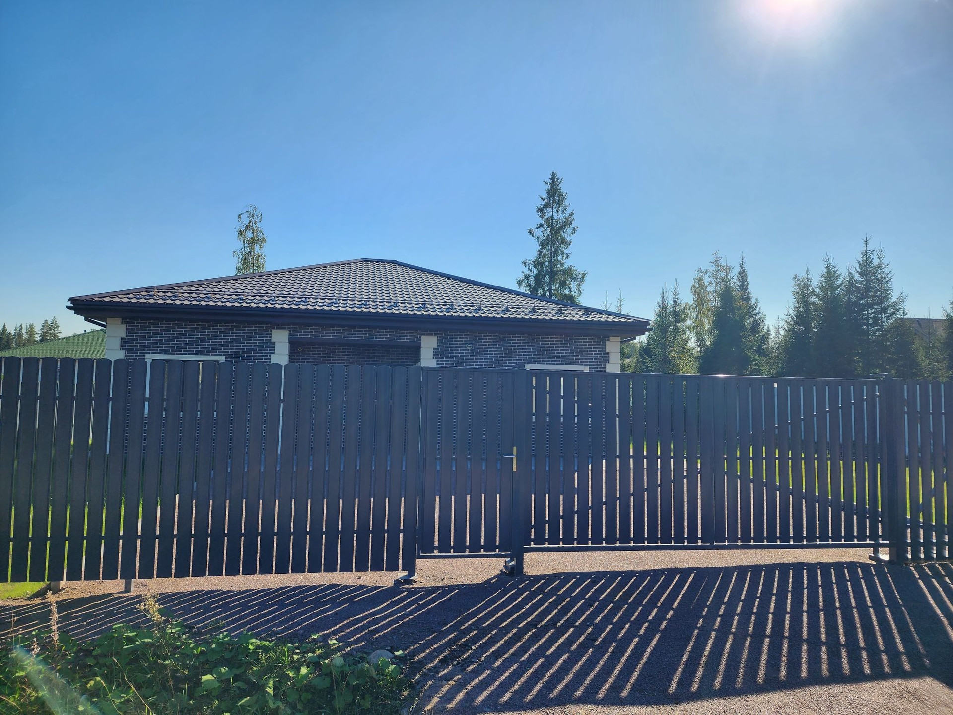 Сделан забор, раздвижные ворота, калитка.