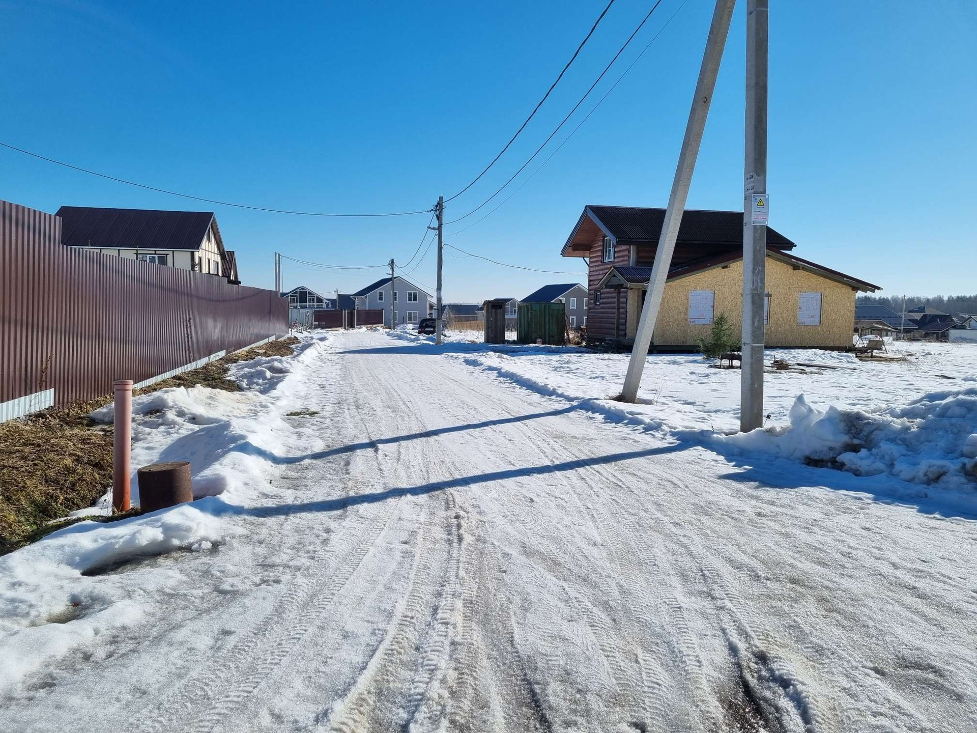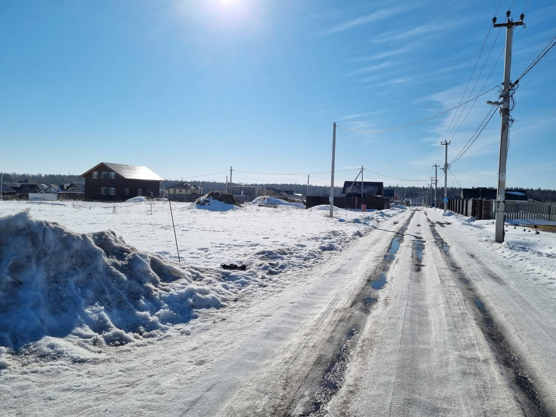 Дороги чистятся, ремонтируются, освещаются. В поселке есть городская вода (водопровод от водоканала). Электричество. В перспективе газ (взнос за газ оплачен). Есть детская площадка.