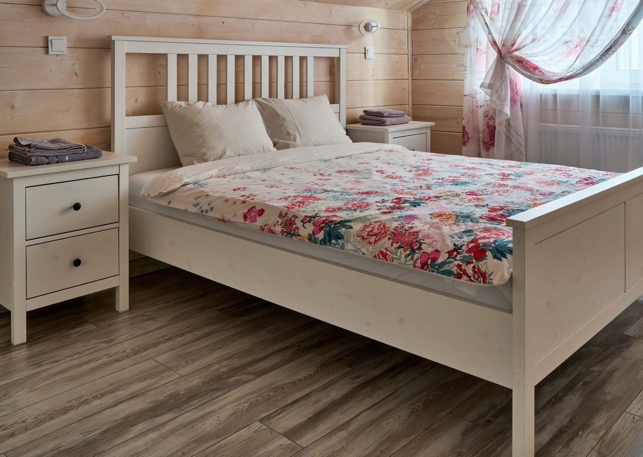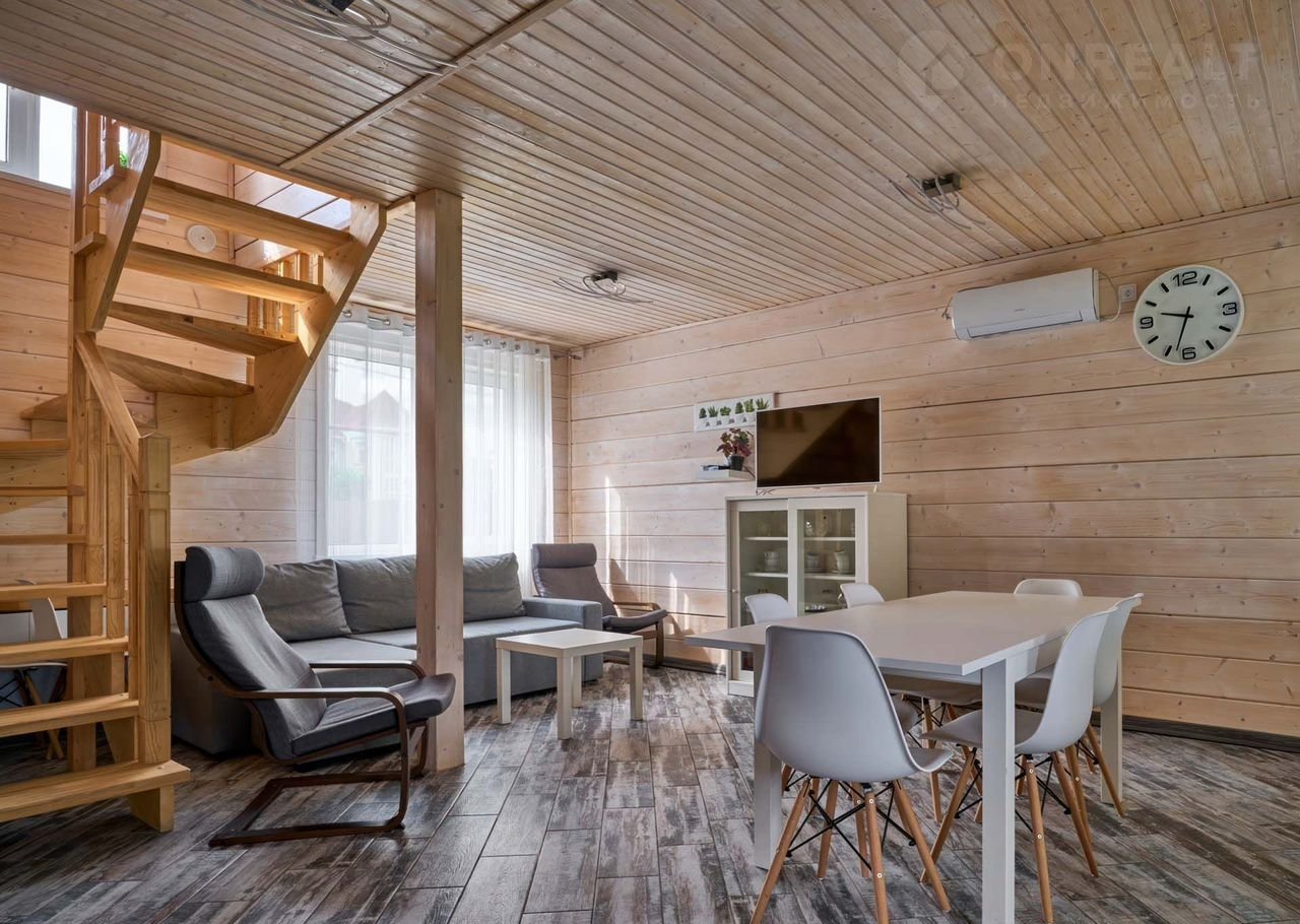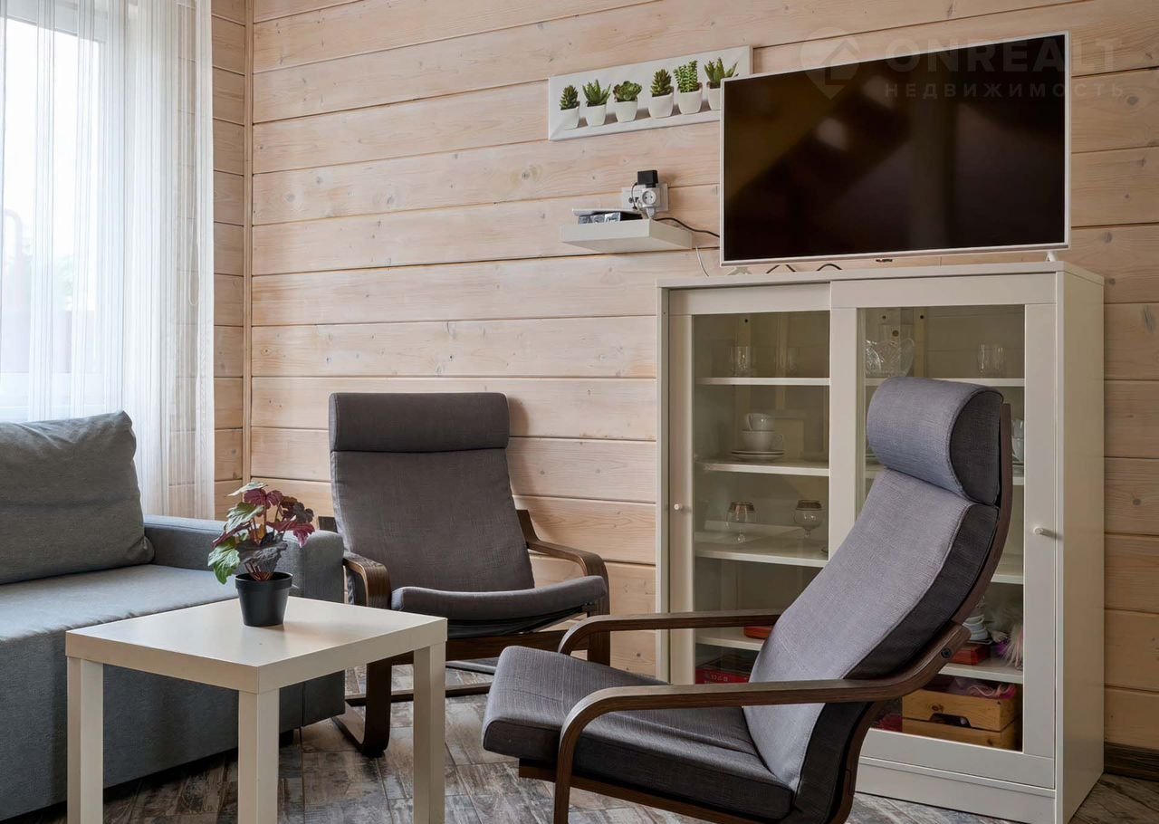 Коттедж рассчитан на размещение до 7+2 человек. На втором этаже располагаются 3 спальни с двуспальными кроватями и одна спальня с односпальной кроватью, в гостиной комнате имеется раскладной диван на двоих. Кухня полностью оборудована всей необходимой техникой (холодильник, чайник, кофеварка, варочная панель, СВЧ, посудомоечная машина) и столовой посудой и приборами на 9 персон. Из просторной гостиной имеется выход на террасу, где можно посидеть с друзьями или семьей вечером, или позавтракать с утра. На втором этаже располагается три спальни с двуспальными кроватями и одна спальня с односпальной кроватью. Также имеется детская кроватка-маятник. В гостиной - раскладной диван для двоих.